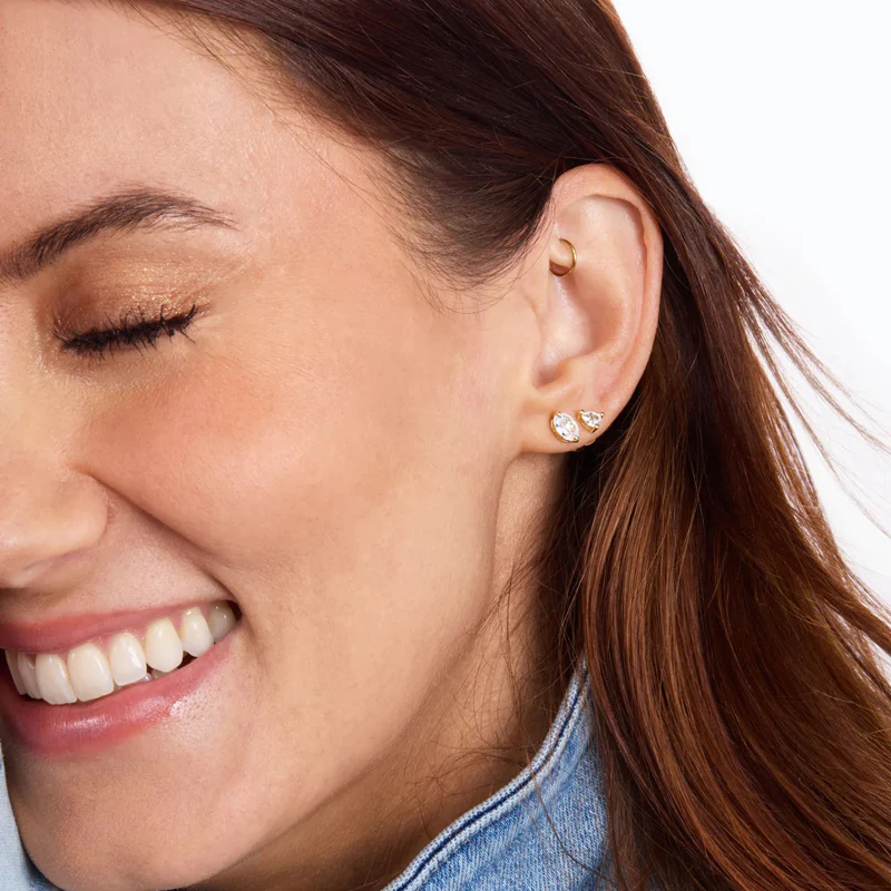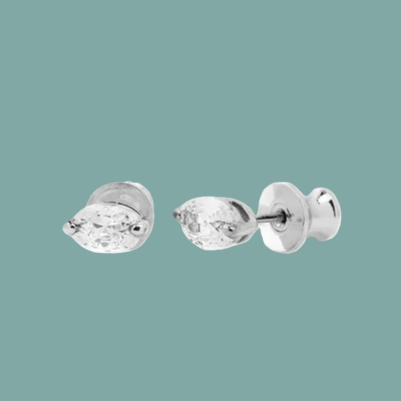 Elevate your everyday look with these stunning marquise-cut simulated diamond studs. Inspired by our bestselling necklace, these 4mm x 6mm beauties strike the perfect balance between edgy sophistication and glamorous sparkle. Crafted with silver plating over brass, they're lightweight enough for all-day wear yet eye-catching enough to make a statement. Whether you're dressing up or keeping it casual, these versatile studs are the accessory you'll reach for again and again.