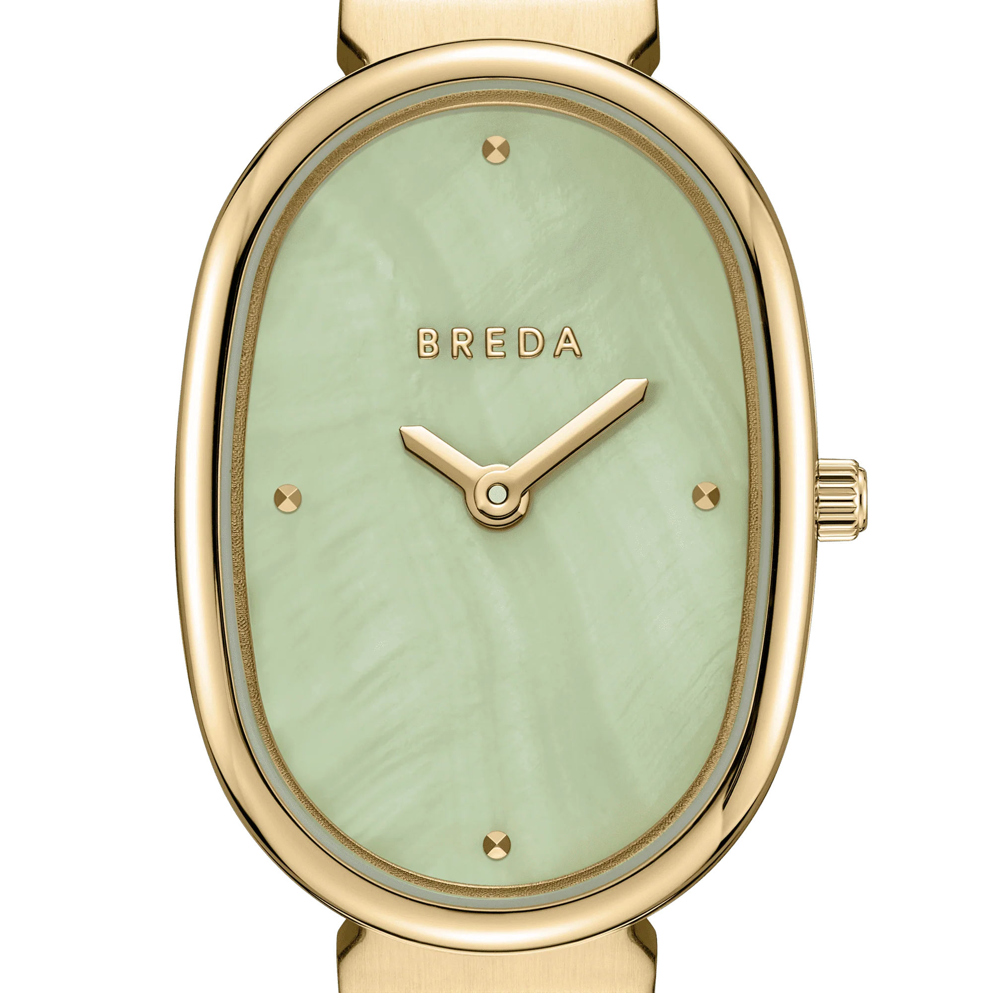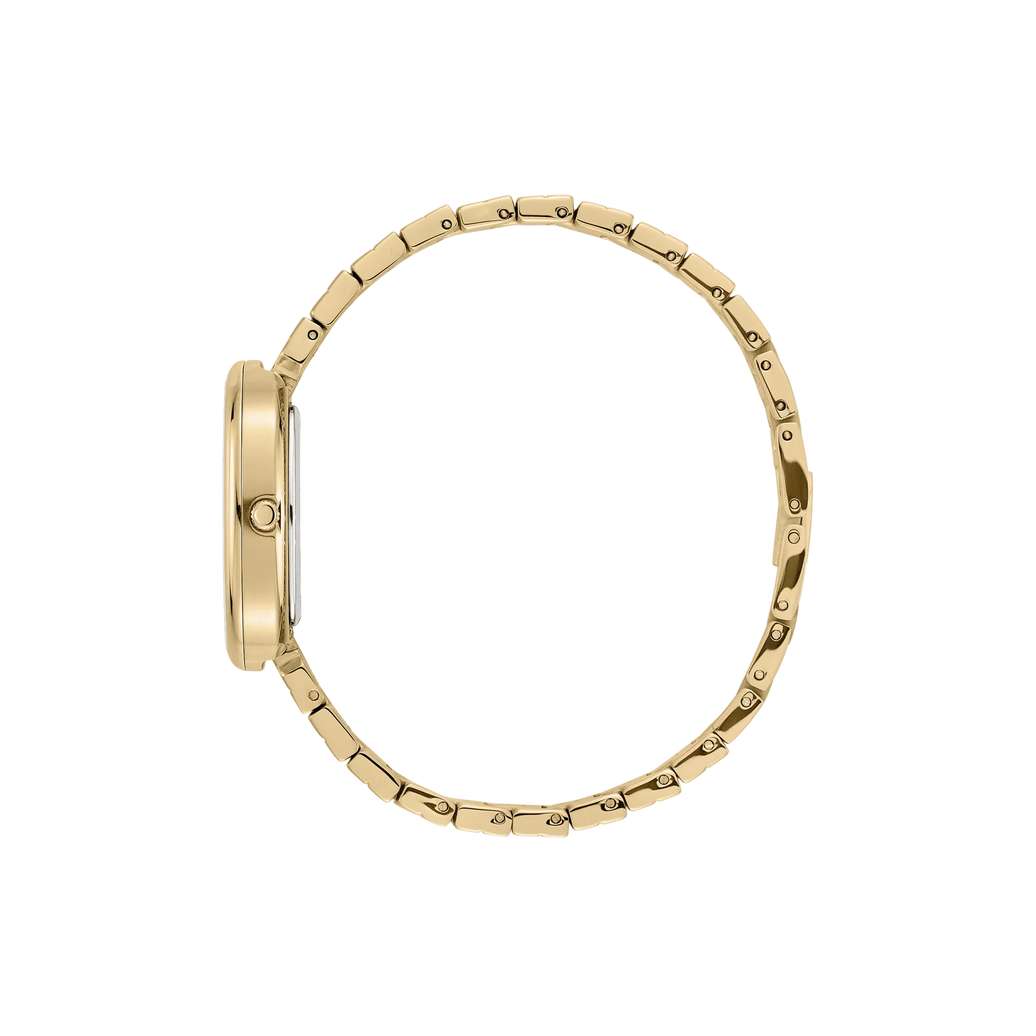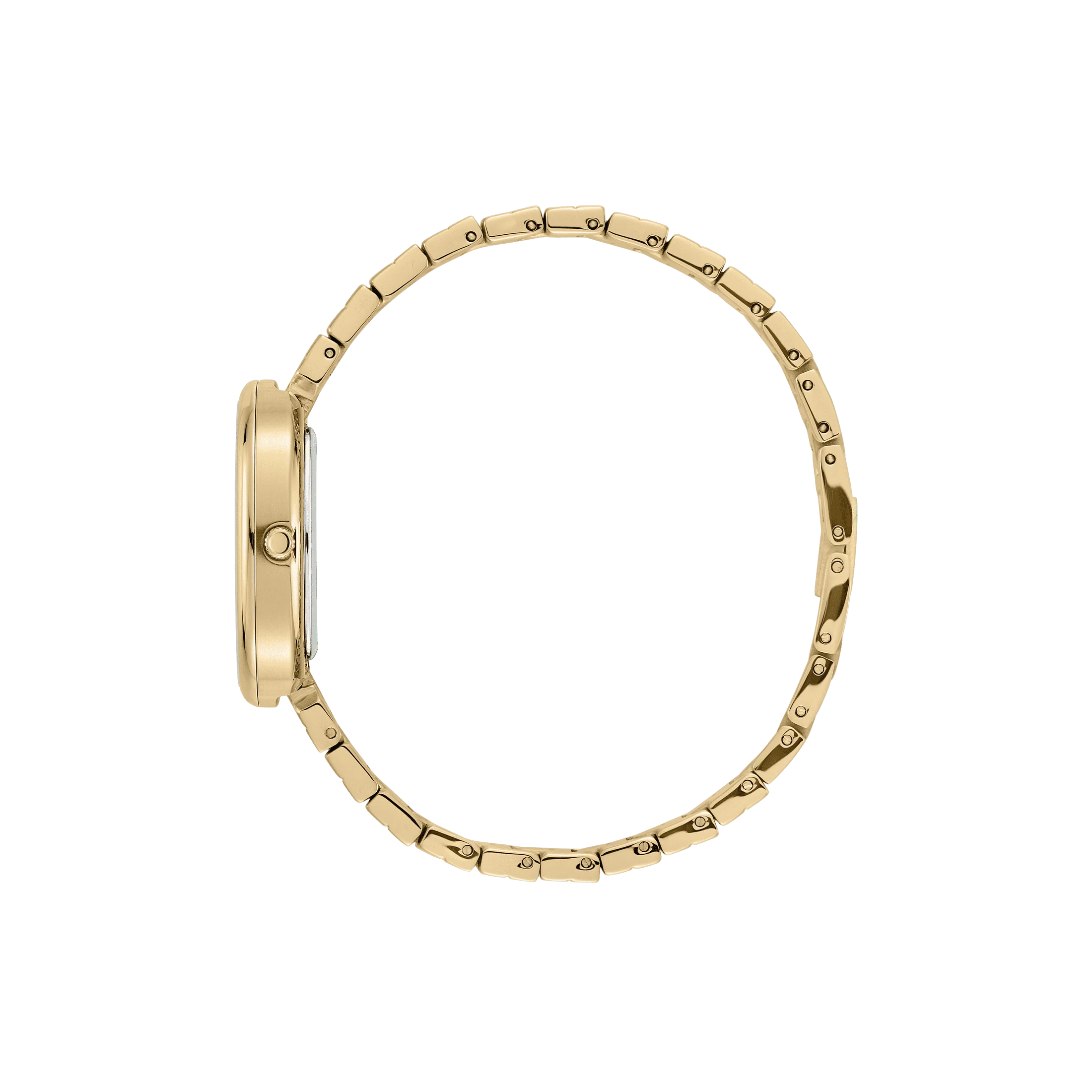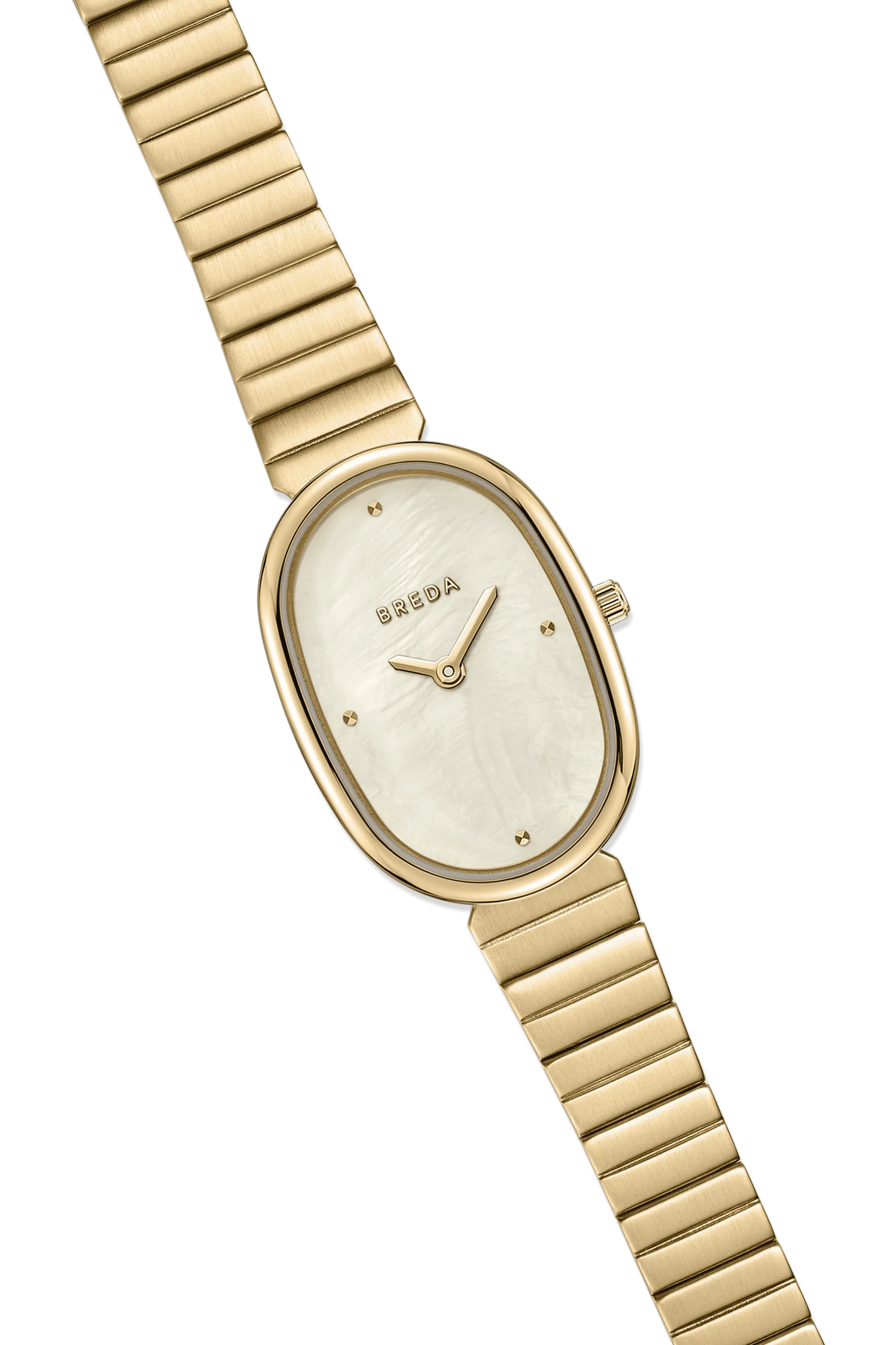 Inspired by sun-soaked days by the water and luxurious evenings, the Jane Watch embodies effortless elegance. This timepiece features a delicate 23mm oval case paired with a champagne-colored mother of pearl dial that catches the light beautifully. The gold-plated stainless steel bracelet fastens with a refined jewelry clasp, making it as much a statement piece as it is functional. A timeless classic that transitions seamlessly from day to night. Note: Mother of pearl is naturally unique—each dial features its own distinct texture variations, making your Jane truly one-of-a-kind.
