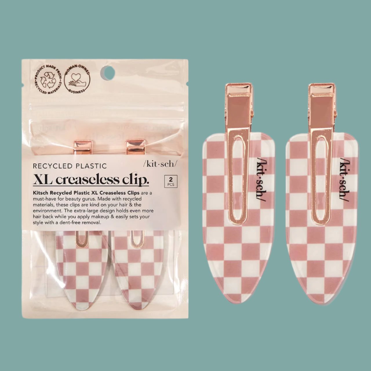 Kitsch Recycled Plastic XL Creaseless Clips are a must-have for beauty gurus. Made with recycled materials, these clips are kind on your hair & the environment.