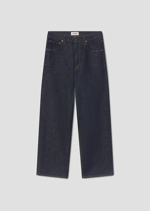 AGOLDE's Ren Jean - Reissue offers a relaxed, high-rise fit with cropped wide legs, making them ideal for laid-back style. Made from EcoMade Fiber—including regeneratively grown cotton, Eco-Indigo dye, and plant-based LYCRA®—these jeans combine comfort with a commitment to sustainability. They fit true to size and pair effortlessly with casual tees or sleek bodysuits for an easygoing, stylish look.