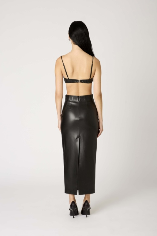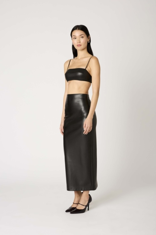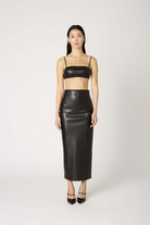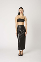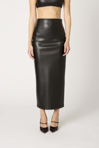 The Elodie Skirt is a sleek black maxi leather skirt crafted from a blend of 50% polyurethane and 50% polyester, offering a comfortable fit with a stylish edge. Its smooth finish and longer length make it perfect for casual outings while adding a touch of modern sophistication to your wardrobe.