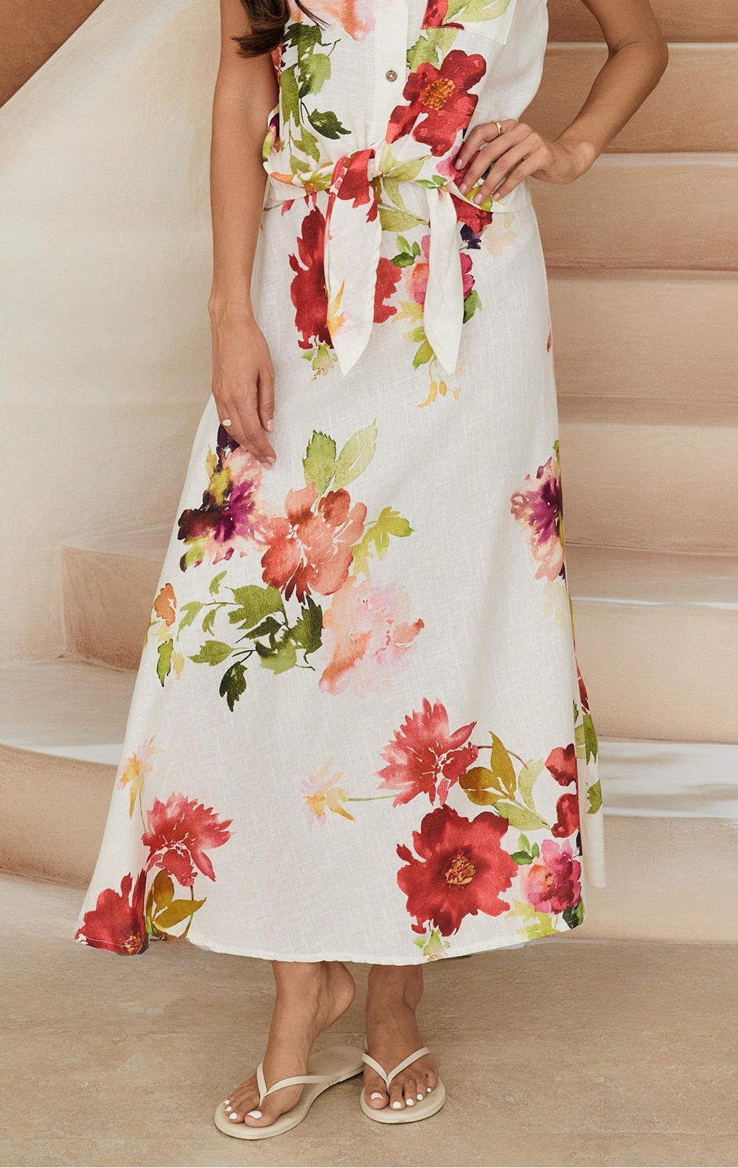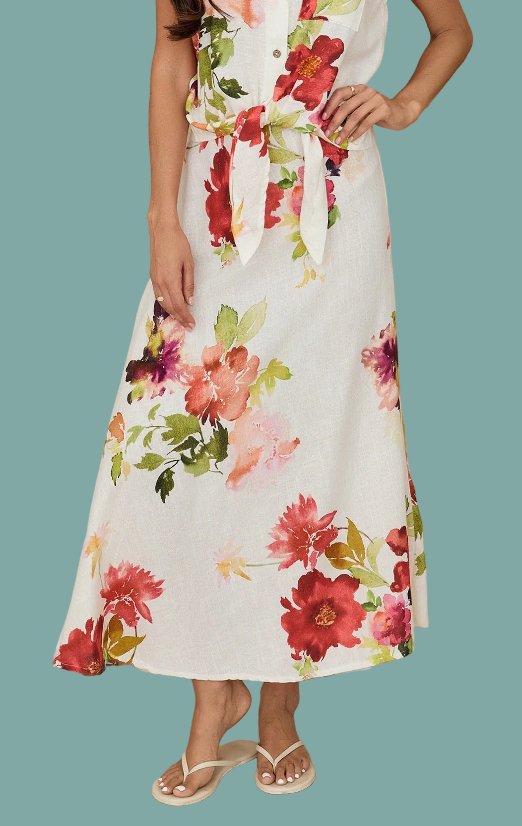 Watercolor Floral Midi Skirt