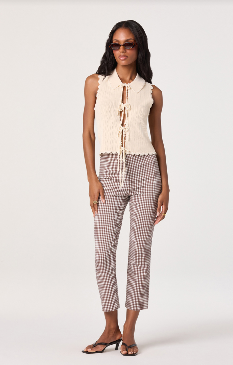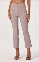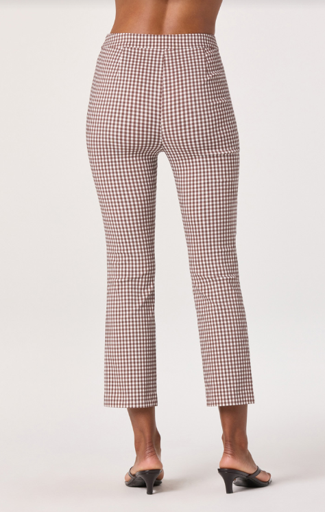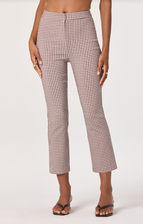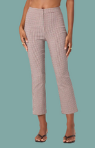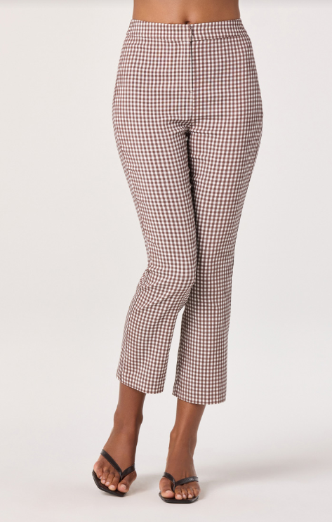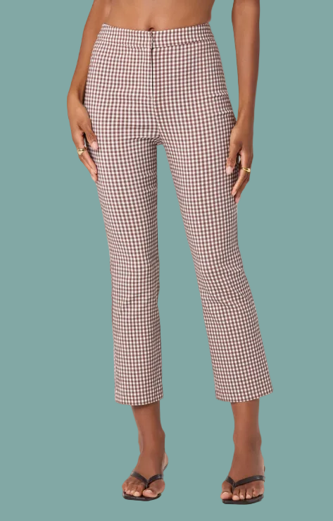 Elevate your everyday style with the Alma Pants, featuring a flattering high-waisted silhouette and cropped length that pairs perfectly with sneakers or heels. The classic cigarette fit hugs your curves while the timeless brown gingham pattern adds a touch of vintage charm to any outfit. Versatile enough for casual weekends or dressed-up occasions, these pants are a wardrobe essential that works season after season.