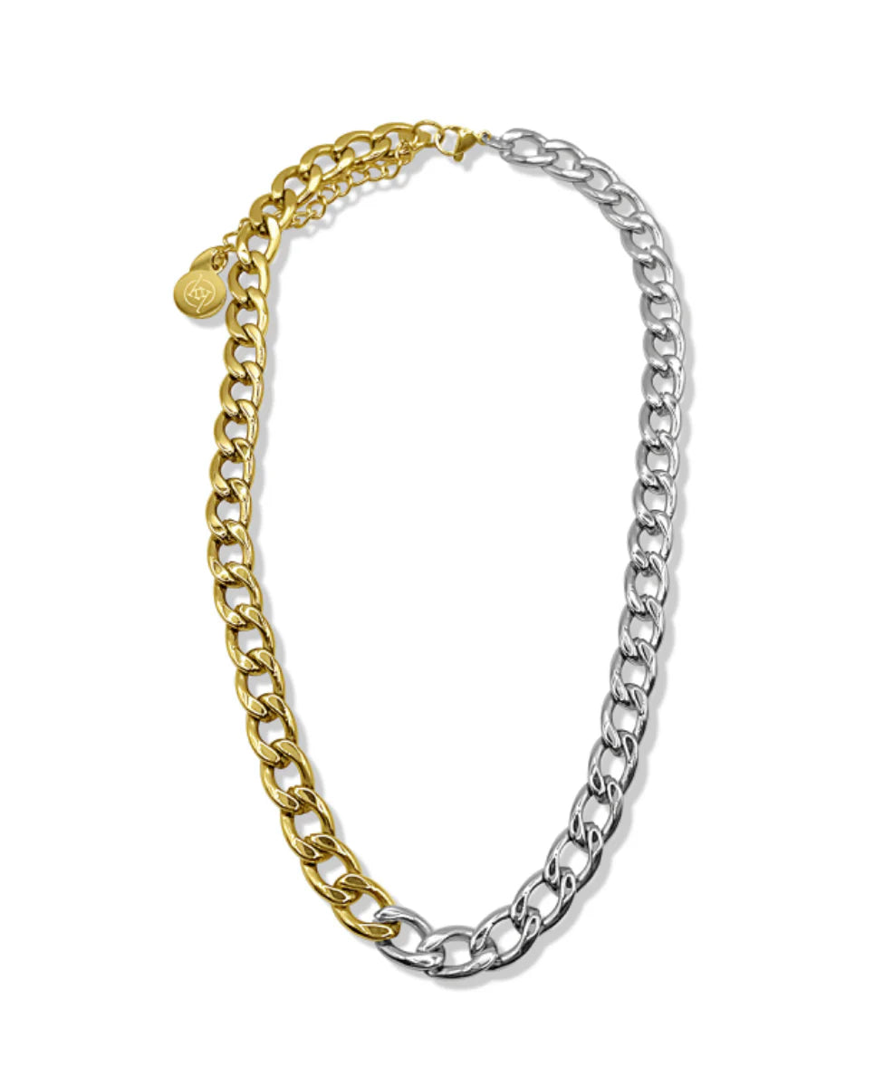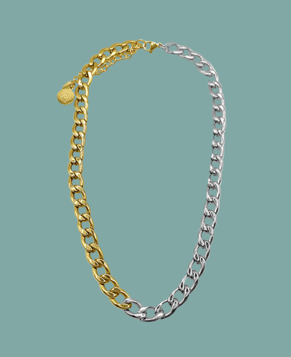 The Ava Necklace beautifully blends silver and gold tones in a mixed metal chain design, making it a versatile accessory for any outfit. Its casual style adds a touch of effortless chic, perfect for everyday wear or layering with other favorites. This necklace brings subtle elegance with a modern twist, ideal for those who love a unique yet timeless piece.