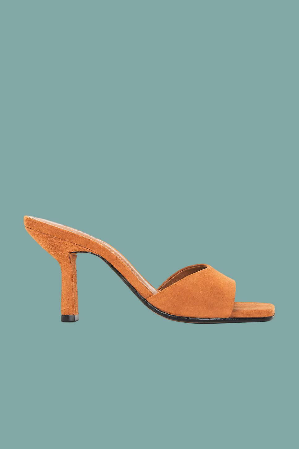 The Posseni Suede Sandal offers a sleek, modern twist on the classic mule with a sharp silhouette and a 3.6-inch stiletto heel. Its squared toe and open counter design create a stylish yet comfortable slip-on fit. Perfect for pairing with tailored outfits or casual looks that need a touch of structure, these mules bring effortless edge to any wardrobe. Made with a leather upper and outsole, they combine quality materials with a confident, polished vibe.