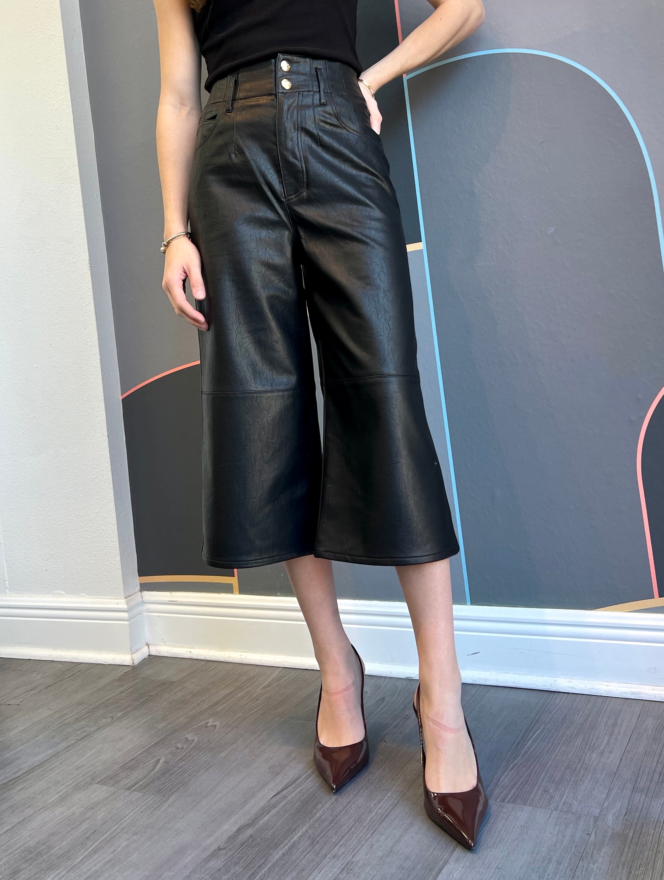 These Pulina Court Pantaloon capri pants feature a large waistband with a comfortable double-button opening for a secure fit. Designed with a straight-leg cut, they offer a relaxed and casual style ideal for everyday wear. The roomy waistband ensures comfort throughout the day, making these pants both practical and stylish.