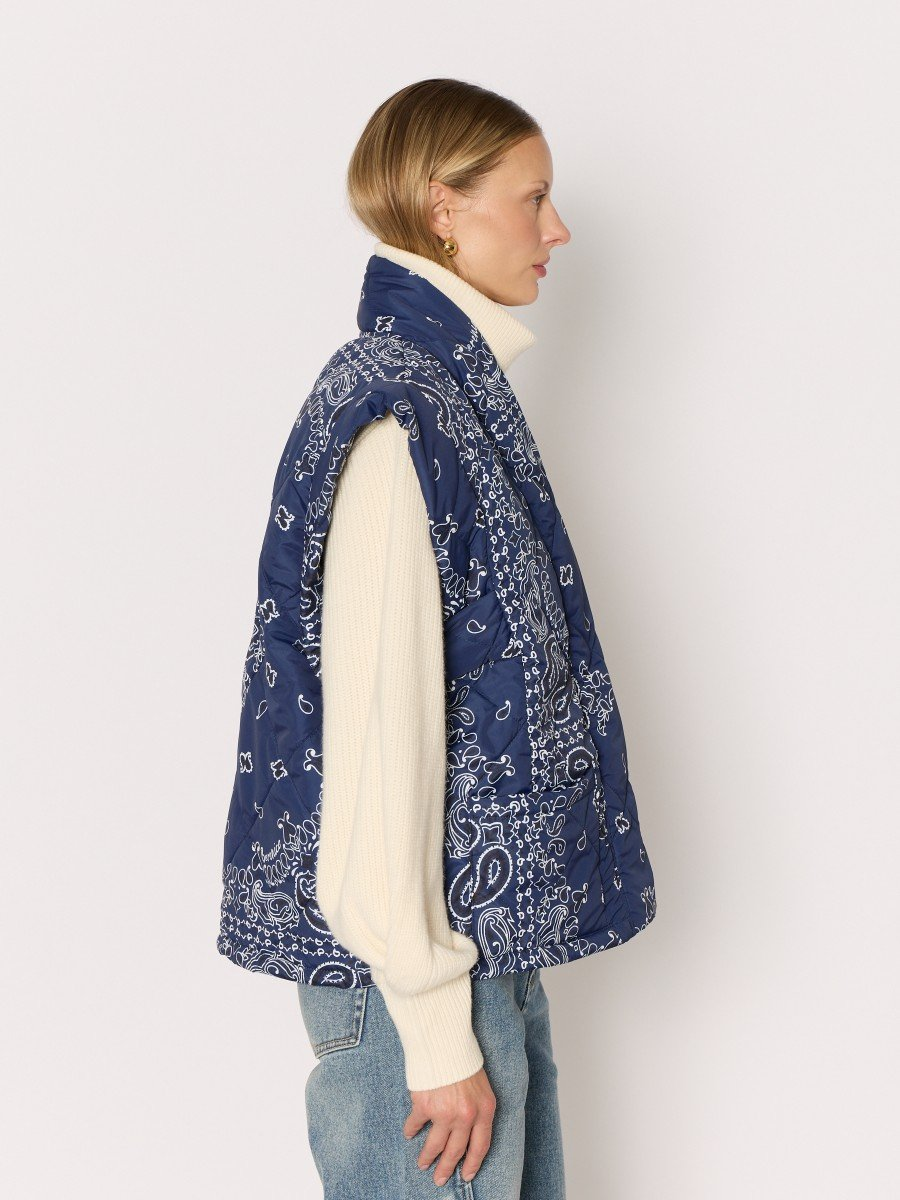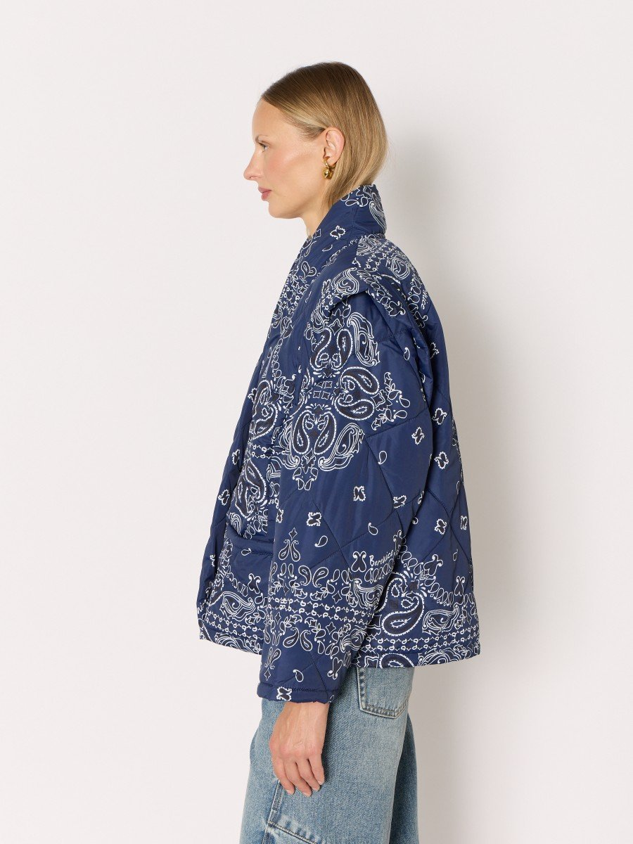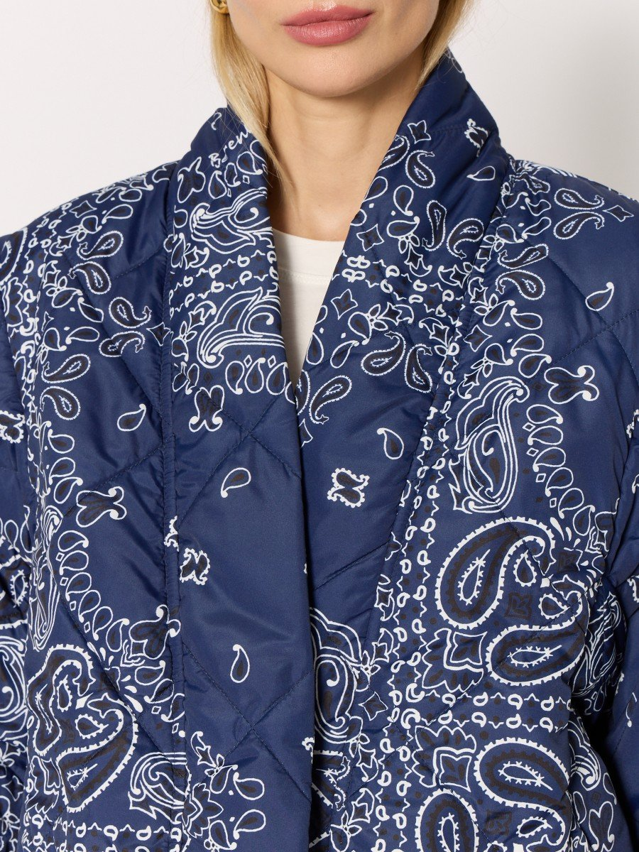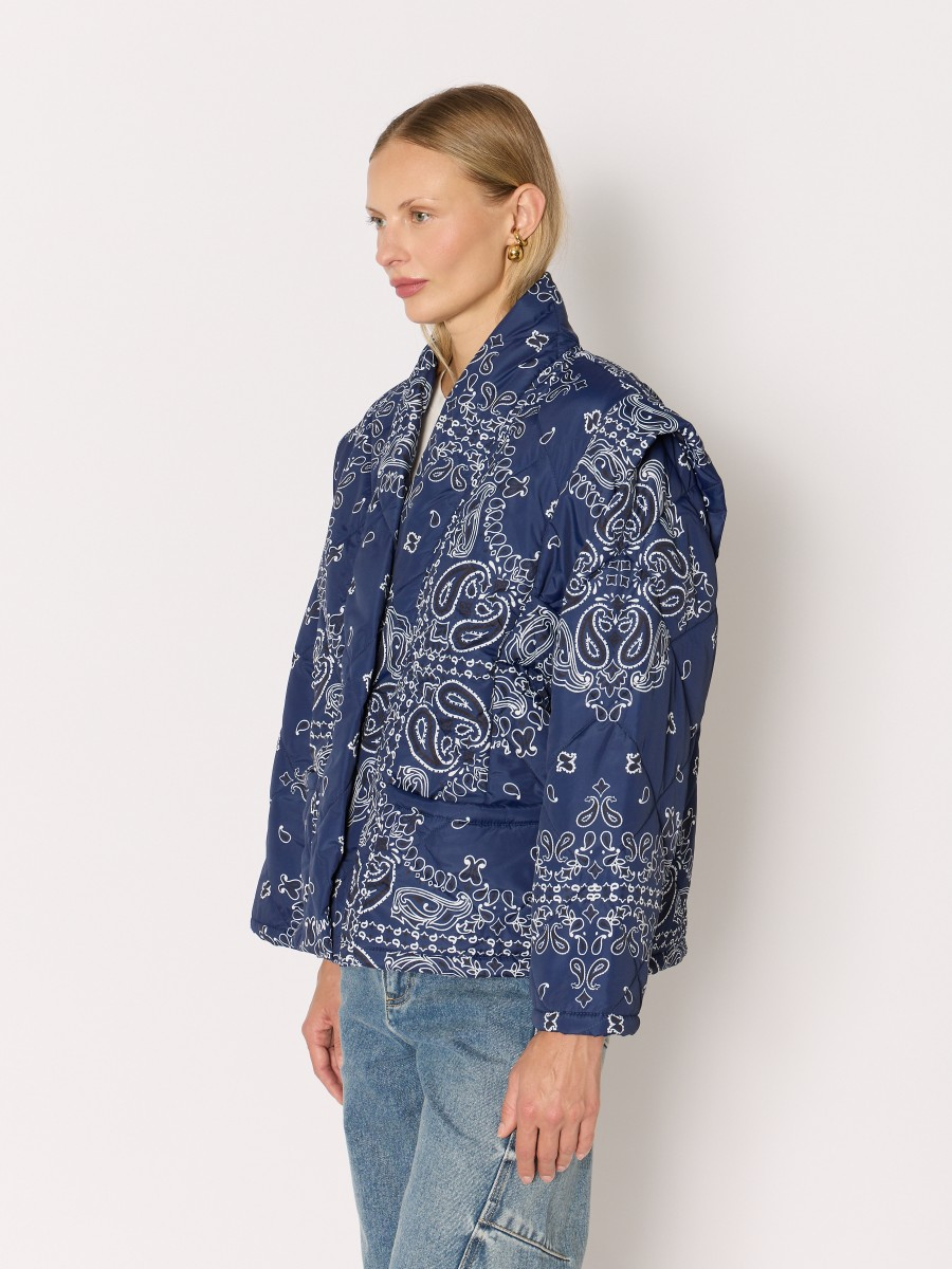 The Quilted Bandana Jacket brings a fresh streetwear vibe with its bold blue bandana print and comfortable quilted fabric. Its detachable sleeves offer versatile wear, letting you switch between a jacket and a sleeveless look effortlessly. Featuring front pockets for convenience, it’s perfect for creating a stylish urban outfit when paired with leggings or high-waisted jeans. Practical, comfortable, and effortlessly cool, this jacket makes a standout addition to your casual wardrobe.