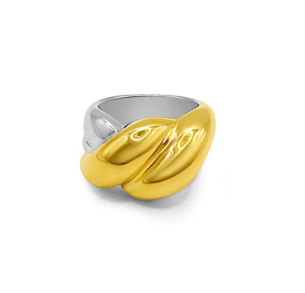 The Sawyer Ring features a stylish twisted design crafted from stainless steel with a durable 18k gold plating. Available in sizes 7 and 8, this ring is tarnish-resistant, making it perfect for everyday wear without losing its shine. Add a subtle, modern touch to your look with this easy-to-care-for accessory.