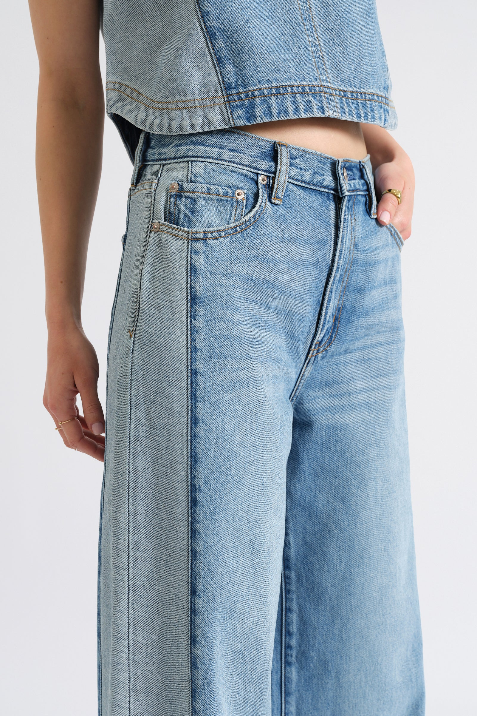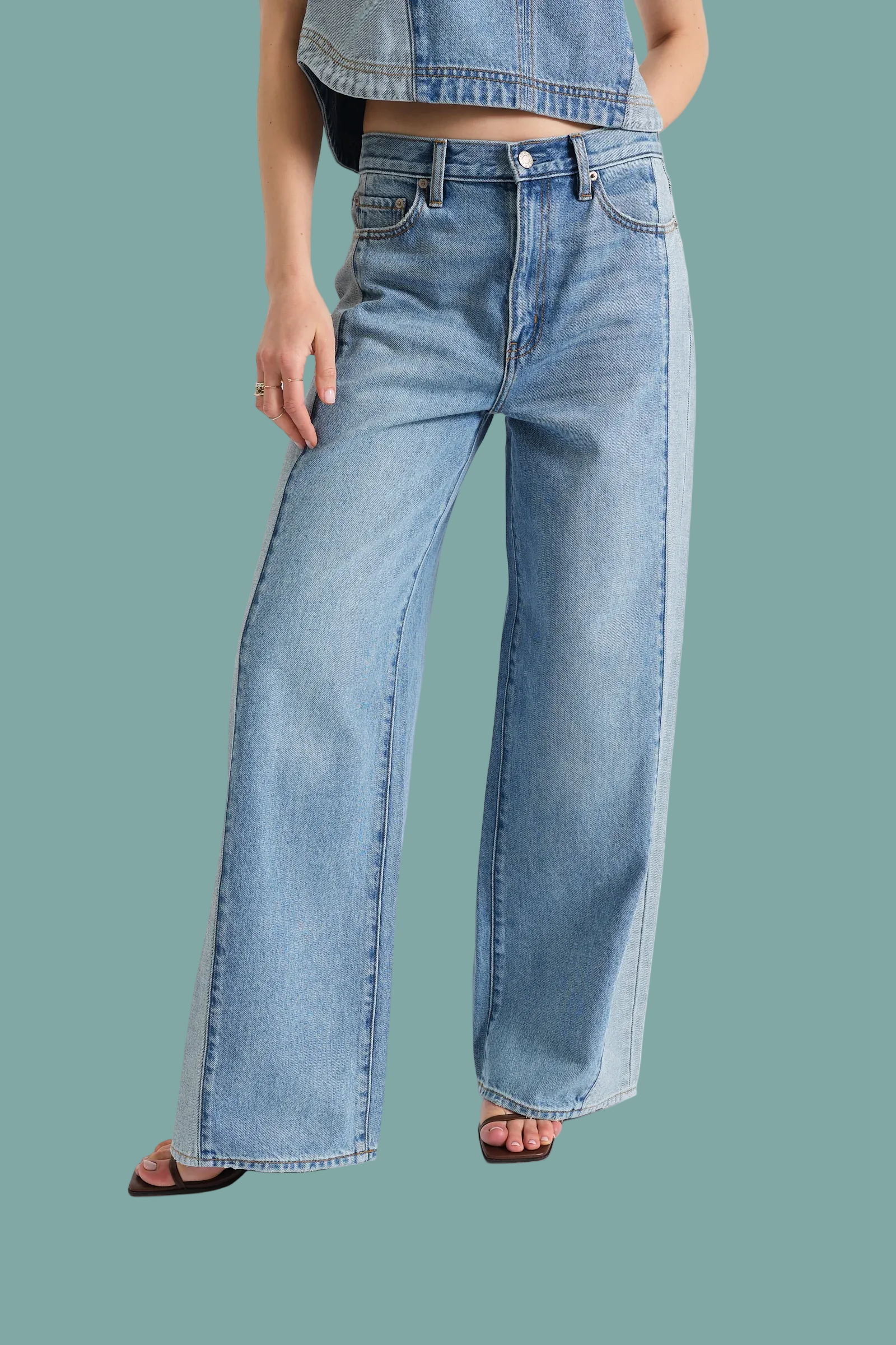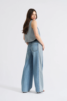 For the girl who never takes the same route twice. This mid-rise palazzo jean brings serious drama in the best way. The waist sits comfortably relaxed, then opens into an easy, fluid wide leg that feels elevated yet effortless. The vintage-inspired wash gives it that sun-faded, well-traveled look, while the rigid denim keeps the silhouette clean and structured. Throw them on and let them do the talking. 12" rise, 32" inseam, 24" leg opening. Non-stretch 100% cotton. Machine wash cold—the fuller the load, the more water we save.