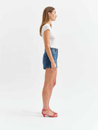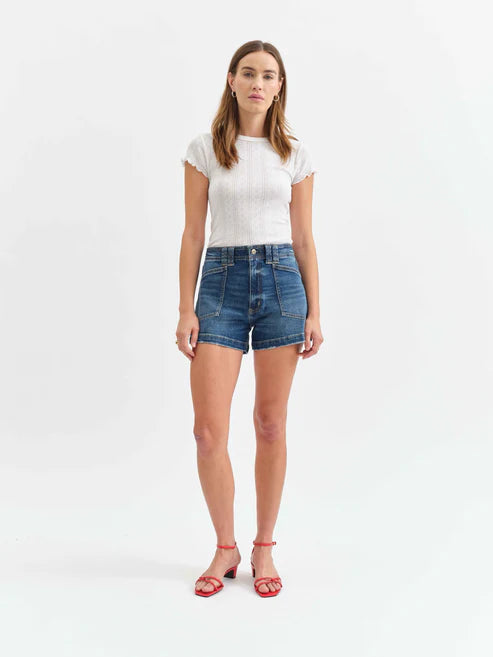 A relaxed yet polished denim short with stitch front pockets, a high rise waist, and a true indigo wash. Constructed in our Tough Love denim, it’s mostly rigid while yielding to your body in all the right ways.