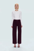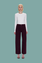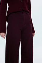 The wide leg that changes everything. Penny sits at a high rise with an ultra wide leg silhouette and full-length 28" inseam that creates effortless drama. The relaxed wide leg flows beautifully while the high rise anchors the proportions perfectly. Crafted from our comfort stretch fabric in Claret, a rich burgundy tone