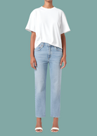 The Valen is a mid-rise vintage straight jean with an ankle-grazing inseam, designed with a flattering square top block for a sleek, tailored fit. Crafted from comfort stretch regenerative cotton, these jeans offer both structure and flexibility for all-day wear. Pair with a relaxed tee or a sharp button-down for an easy, elevated look, or keep it simple with an oversized sweater for a laid-back yet refined vibe.