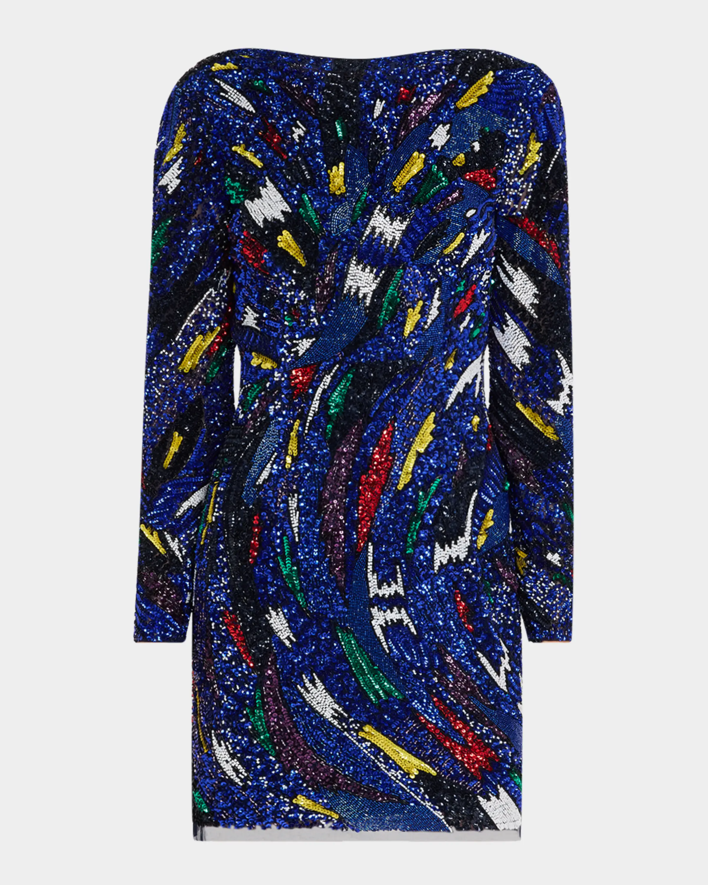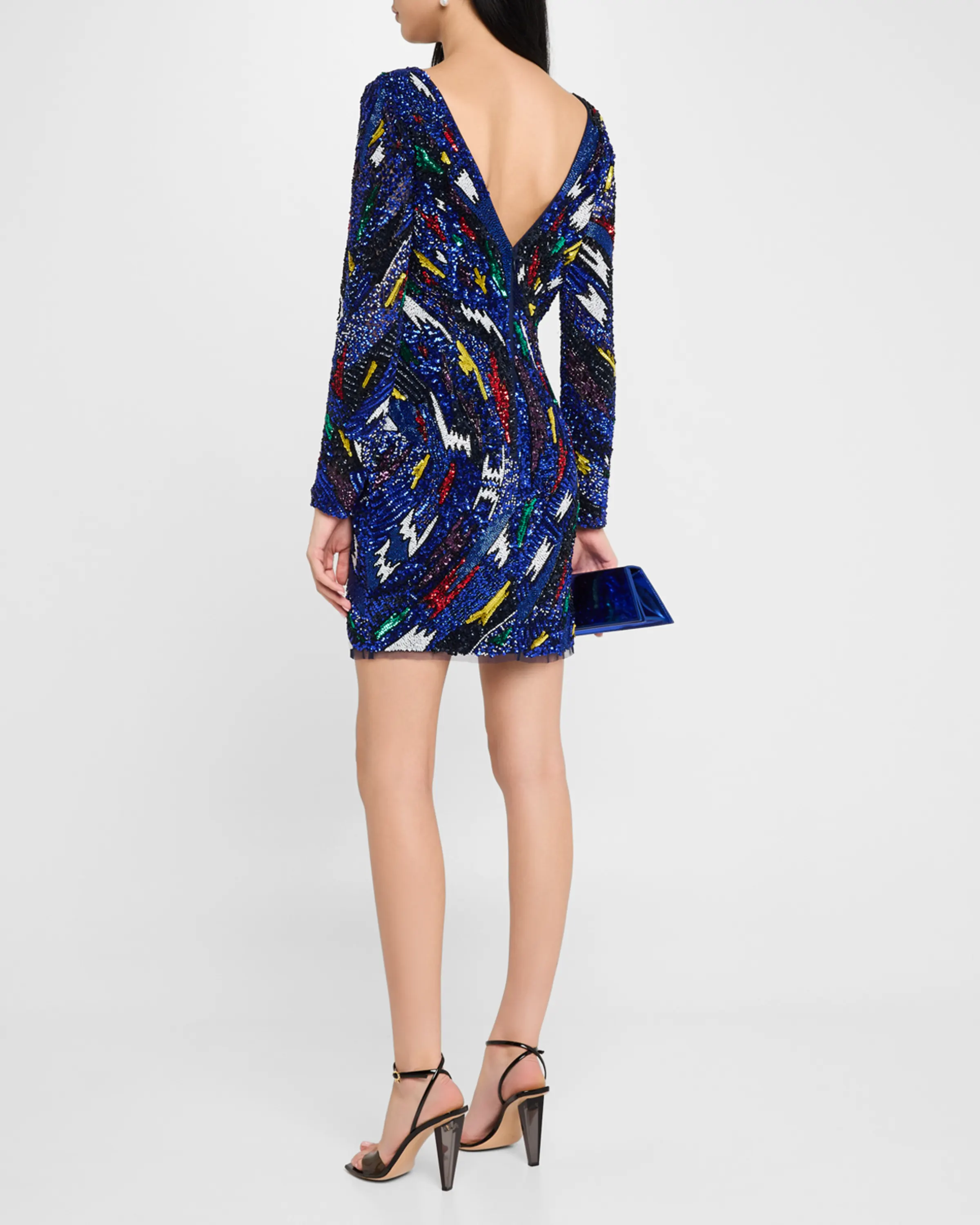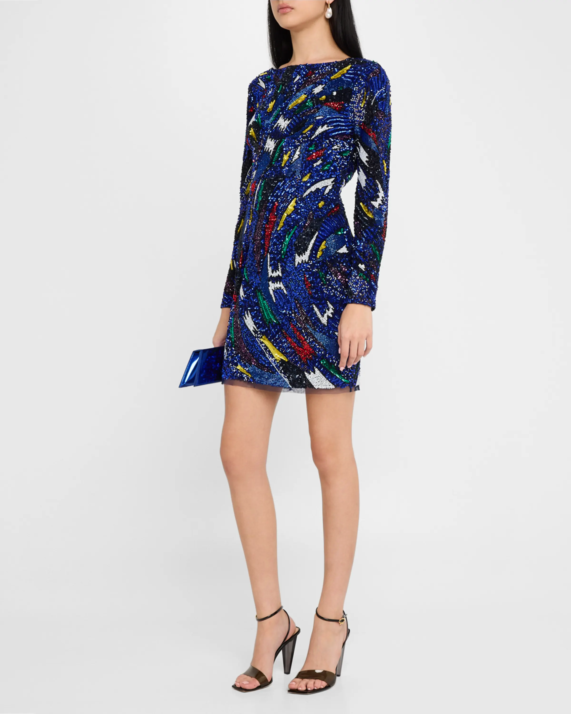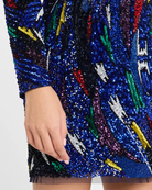 Be the life of the party in the Bianca Bead & Sequin Mini Dress. With a high neckline, long sleeves, and bodycon silhouette, this dress will show off your figure in style. The shimmering bead and sequin detailing adds a touch of glamour, making it perfect for any special occasion.