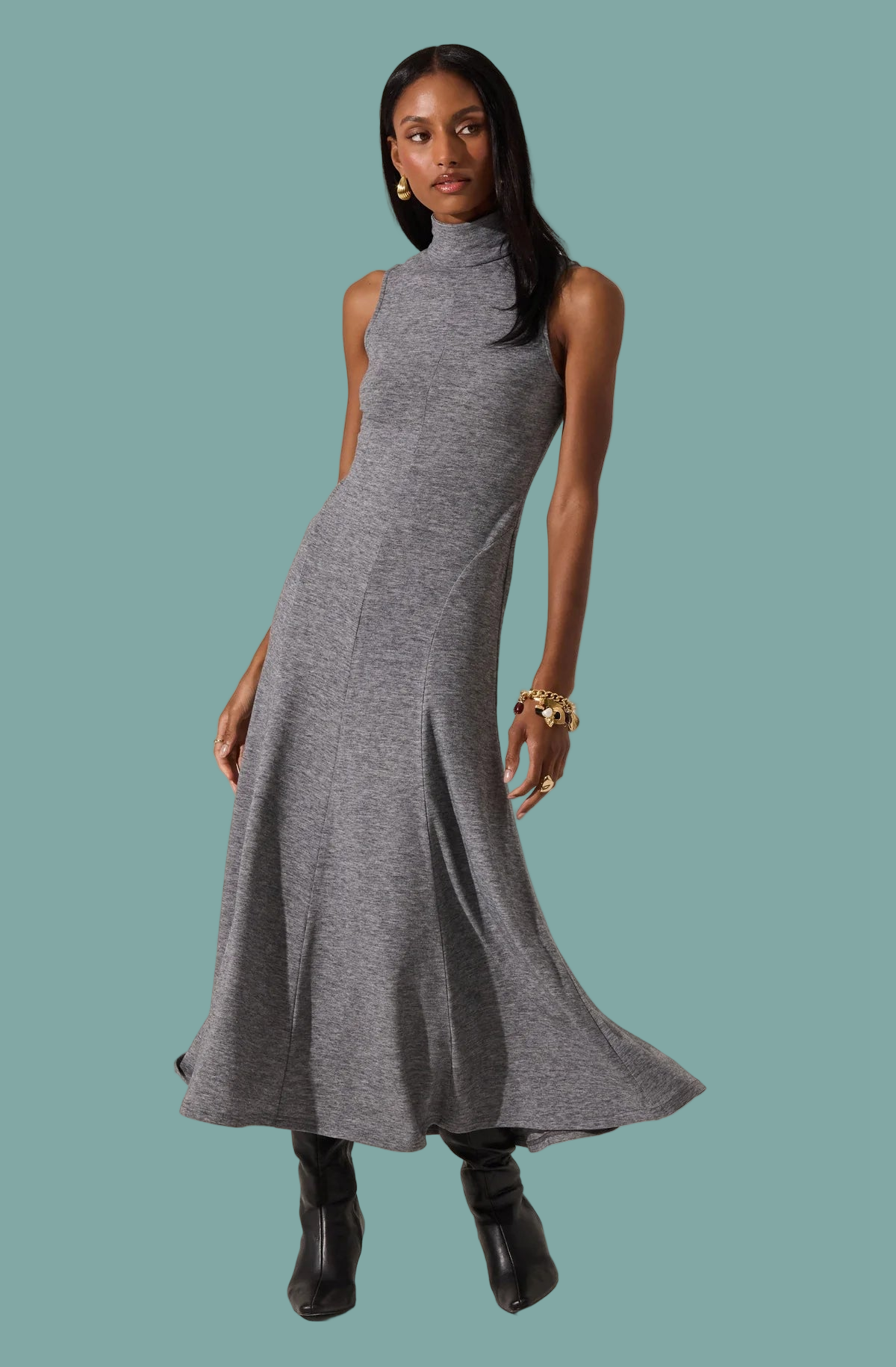 The Haylie Dress combines style and comfort for your workday and beyond. Featuring a sleeveless turtleneck design with a keyhole button closure at the back, this sweater dress offers subtle seam details for a modern look. Made from a soft blend of polyester, rayon, and elastane, it provides a cozy fit that moves with you. Easy-care instructions keep it looking sharp—hand wash cold and line dry to maintain its shape and softness. Perfect for a polished yet relaxed office outfit.