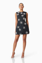 Step out in style with the Maiara Diamante Mini Dress in Black, a perfect blend of elegance and fun. This fit and flare mini dress is designed to flatter your figure, showcasing a beautiful silhouette that accentuates your waist while allowing for ease of movement. The lined front shaping seams provide a structured yet comfortable fit, ensuring you look fabulous at every angle.