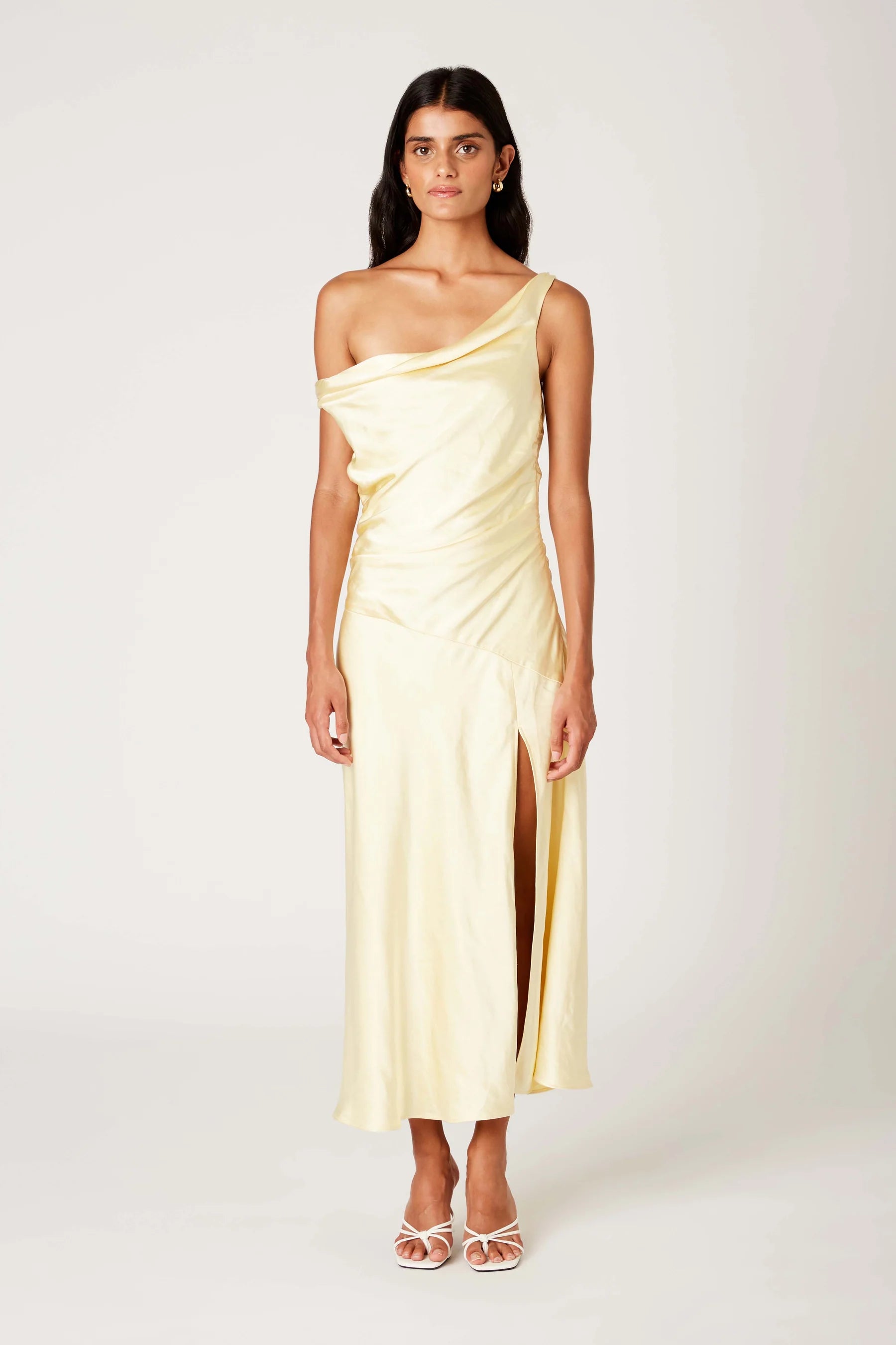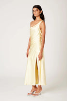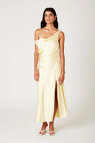 The Tori Dress is the epitome of modern elegance with a touch of old Hollywood glamour. Designed to drape effortlessly, its asymmetrical neckline and artful ruching create a sculpted yet fluid silhouette. A thigh-high slit adds just the right amount of drama, making it perfect for any occasion where you want to turn heads.