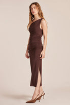 Effortless glamour with a modern edge. Crafted from our luxuriously soft draped modal jersey, this dress features a twisted neckline that sits elegantly off the shoulder for a touch of drama.