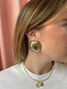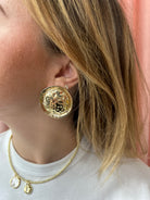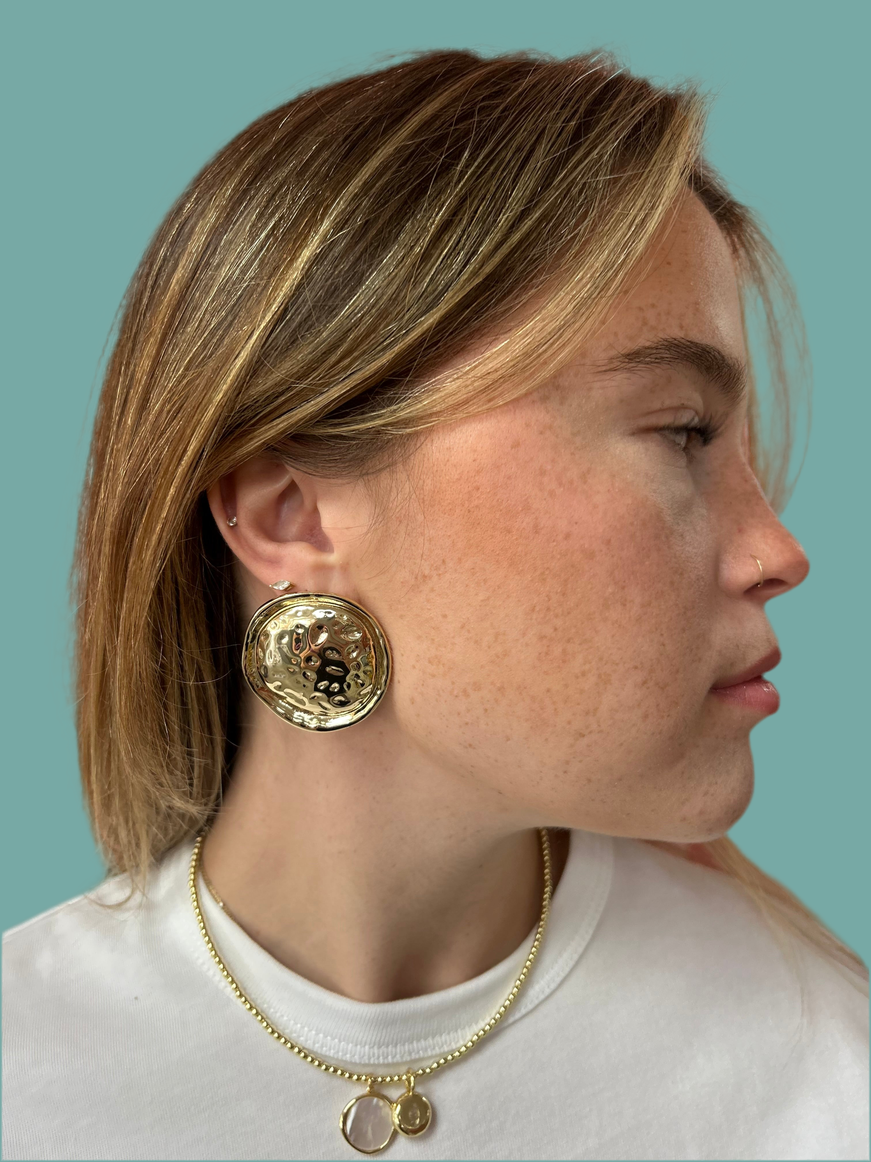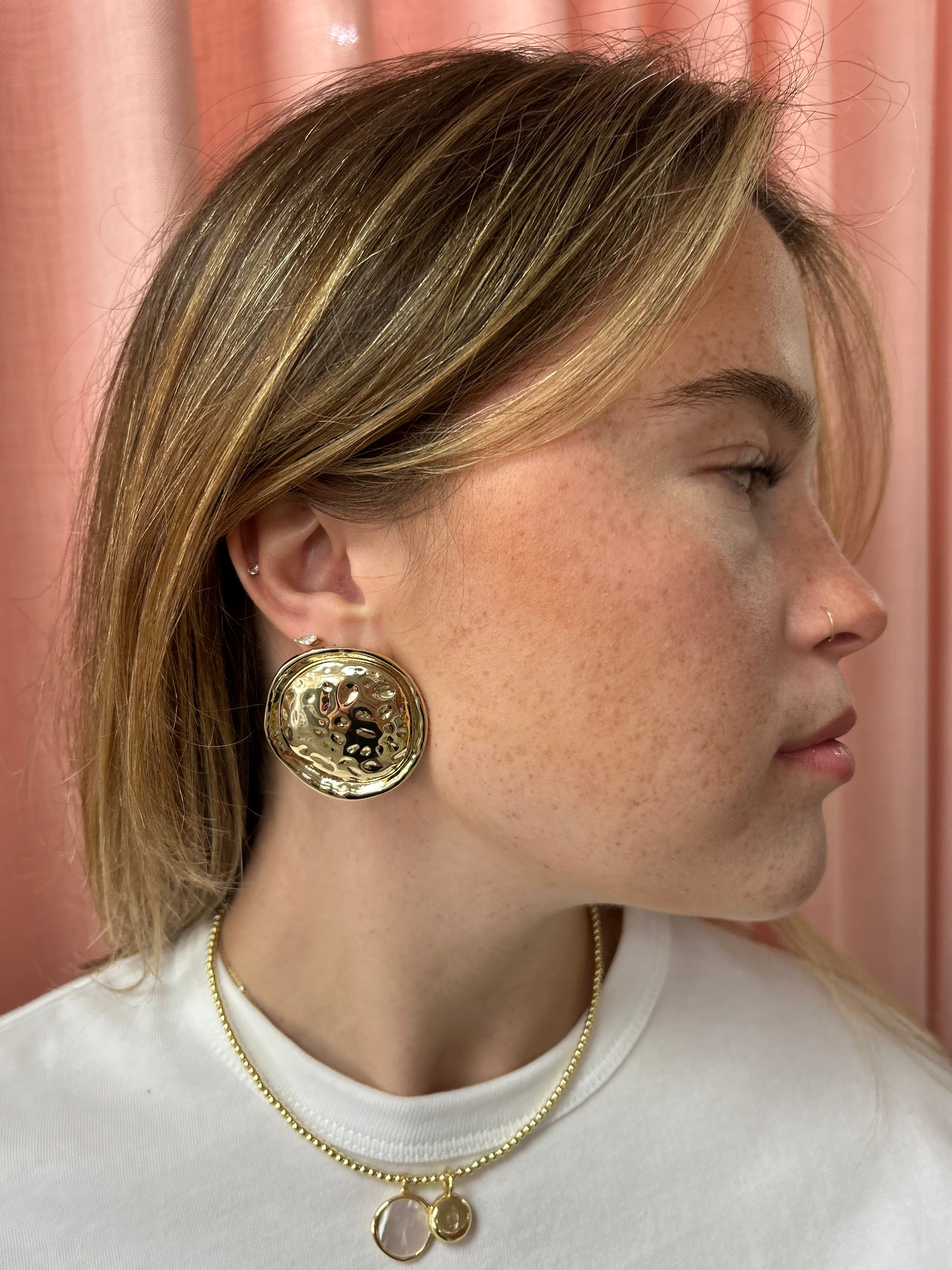 Gold Large Textured Circle Button Earring