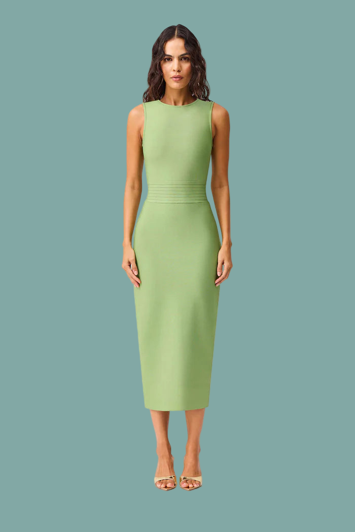 The Seraphina Fitted Midi Dress in Green blends comfort and style with its stretchy double knit fabric that fits your shape while letting you move freely. Its simple rounded neckline and sleek midi length make it perfect for day or night occasions. The invisible back zipper keeps the look smooth and polished, and the unlined design keeps it lightweight and structured. This dress is a great choice when you want to feel confident and effortlessly chic.