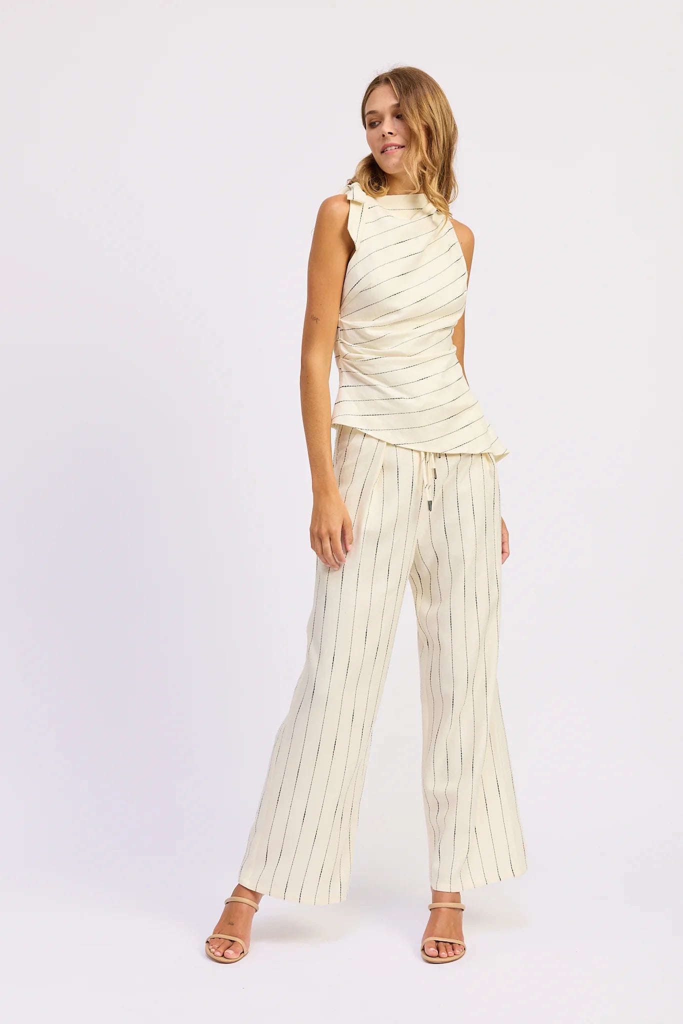 - Crafted from a breathable linen and viscose blend, the Liora Top features an asymmetric silhouette with elegant ruched detailing and a flattering side tie. The cotton-lined design ensures comfort all day long. This versatile tunic pairs perfectly with the matching Liora Trouser for a coordinated look. Hand wash and imported for quality you can trust.