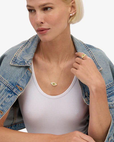Embrace positive energy with Melinda Maria's Green Evil Eye Necklace—your stylish shield against negativity. This eye-catching pendant channels protection, strength, and courage while making a bold fashion statement. The vibrant green hue adds a modern twist to this timeless symbol. Wear it solo for impact or stack it with your favorite pieces to create a personalized look that reflects your unique vibe. Perfect for anyone seeking both spiritual meaning and contemporary style.