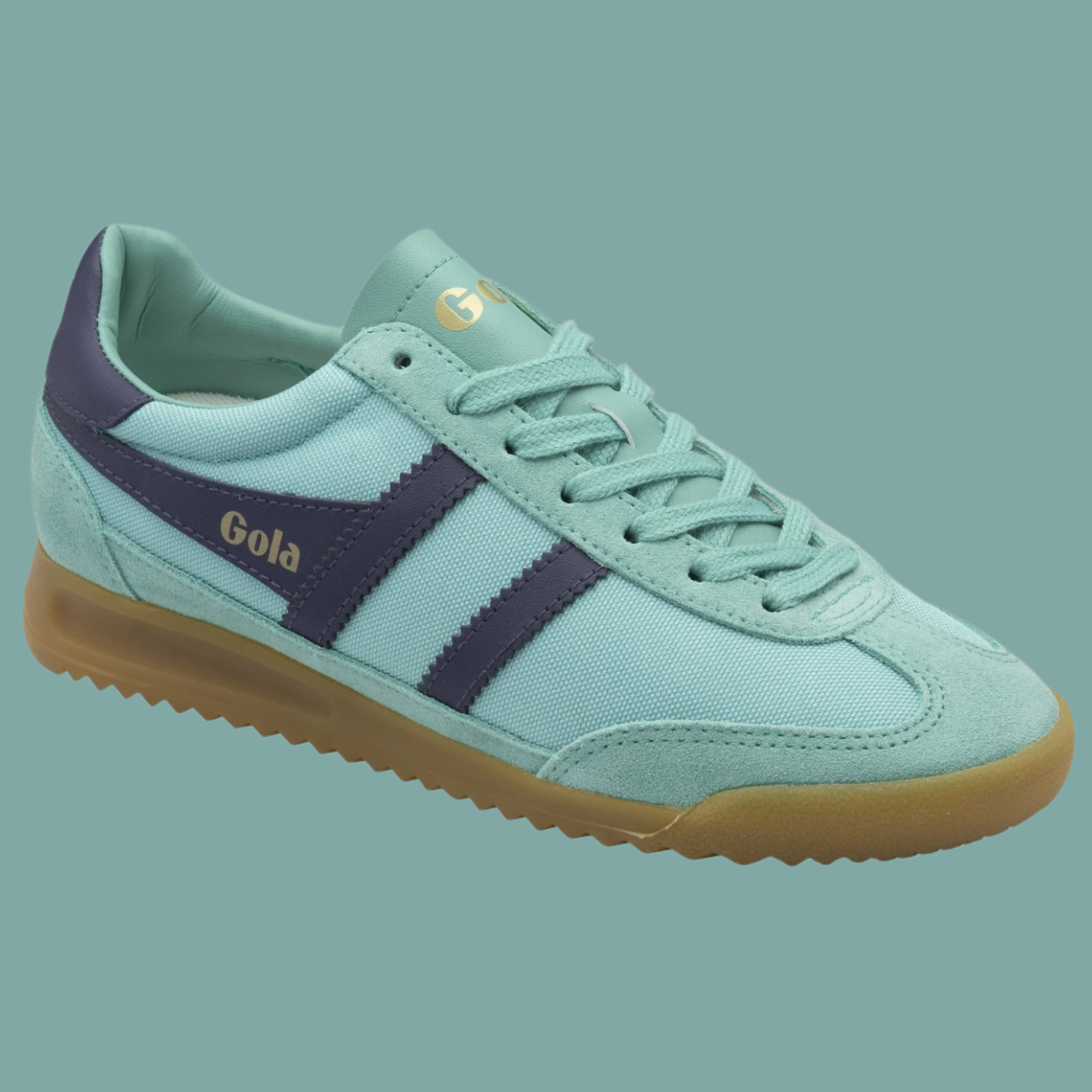 The Tornado Sneaker in Sea Mist and Plum blends classic style with a modern edge. Featuring a durable nylon upper with suede accents on the toe, heel, and lace area, it delivers both comfort and a vintage vibe. The eye-catching plum wingflash detail adds a unique touch, while the slight wedge gum sole provides subtle lift and everyday wearability. Perfect for casual looks, these lace-up sneakers bring the best of old-school flair to your wardrobe.