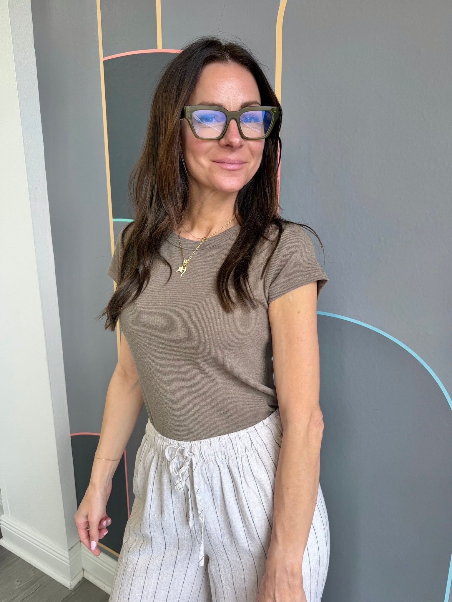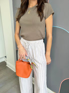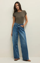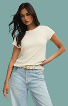 Made from slub rib fabric, this crew neck top is lightweight and easy to wear. We love it tucked into the Remi Denim, Renae Rib Pant, or even the Vista Pant.