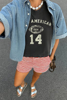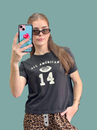 Your new favorite tee for tailgates, summer nights, or just showing a little team spirit. The All American tee is a nod to vintage football, featuring a faded ‘84 football graphic and varsity-style “14”. With a just-right fit and soft feel, this one scores every time.