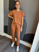 This Boatneck Roll Sleeve Raglan Tee in a warm chai hue brings casual comfort with a twist. Its relaxed boatneck and easy roll sleeves add a playful edge to your everyday look, making it perfect for those who love effortless style with a splash of fun. Cozy up and let your outfit do the talking!