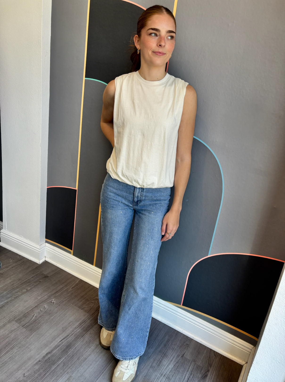 Elevate your casual style with the Crewneck Bubble Hem Tee in Pearl. This playful tee features a charming bubble hem that adds a fun, flirty twist to your everyday look. Soft and comfortable, it’s perfect for pairing with jeans or skirts for a fresh, lively outfit that keeps you smiling all day.