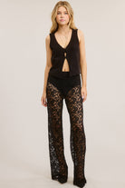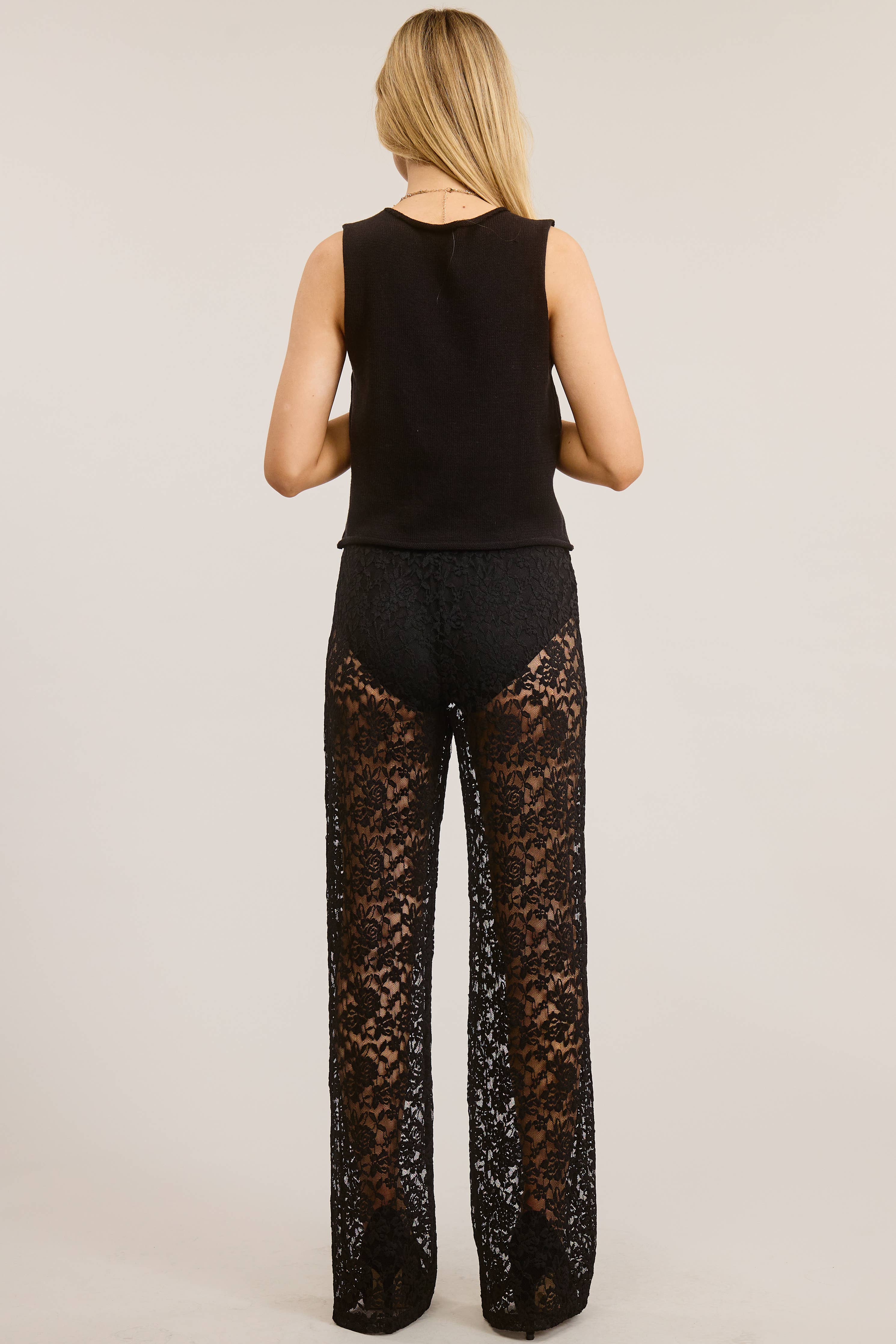Make an elegant and stylish statement with these lace trousers! These pants come with an elasticized high-waisted band, briefs-length lining, sheer open lace design, and a straight-leg silhouette. Pair these with any matching color tops, along with heels or boots, and you're all set to step out in style!