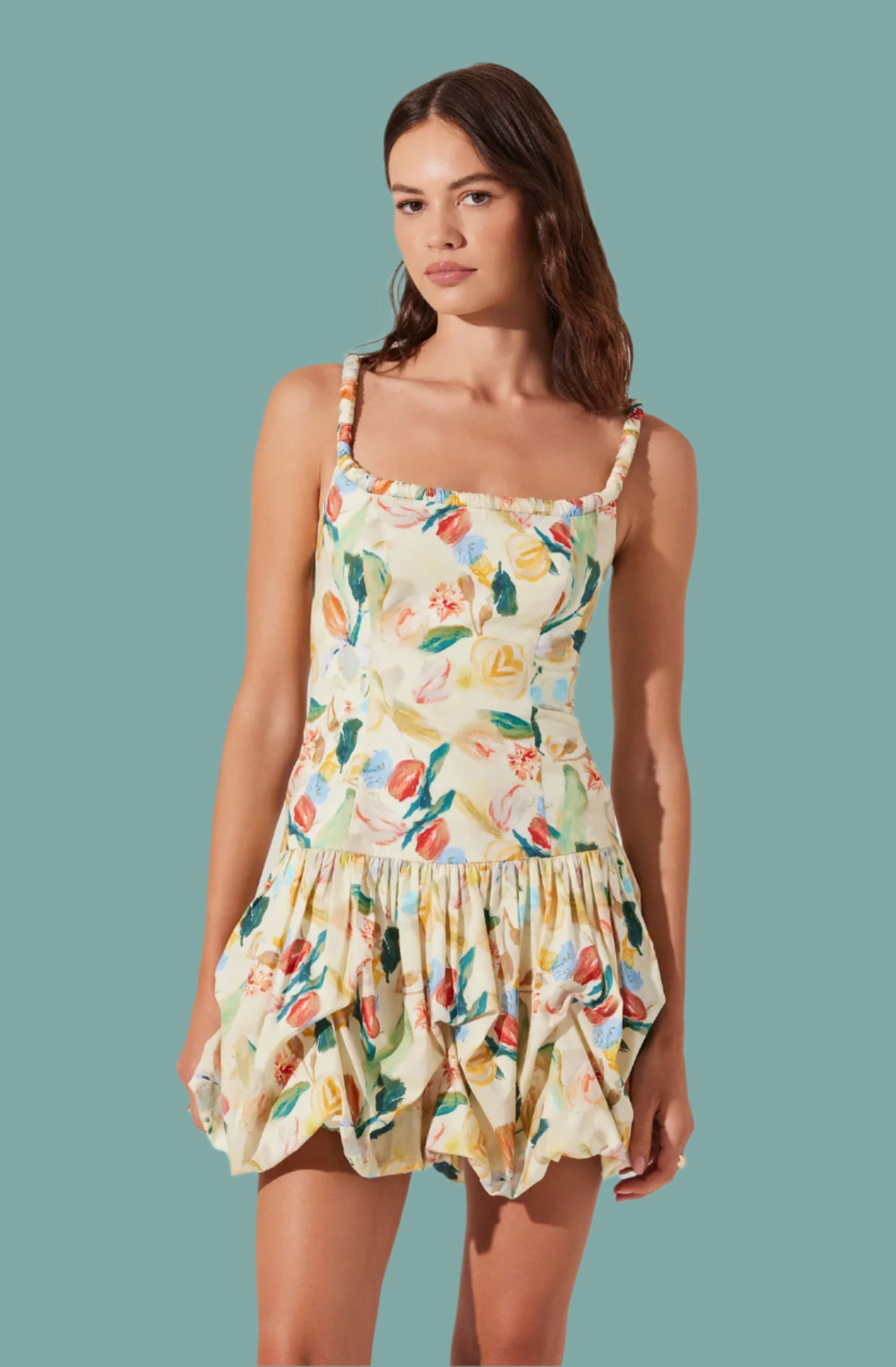 - Bubble skirt with gathered accents