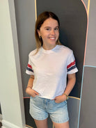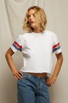 Effortlessly sporty, the Lexi Tee is perfect for any activity (or pretending to do one). With throwback flair from vintage-inspired sleeve stripes, it's cropped and relaxed, perfect for a brunch or a watching a game. Thoughtfully produced in California.