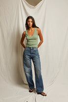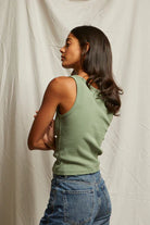 Meet your new favorite tank: the Maria Structured Rib V-Neck in Aloe. This playful twist on our bestselling Blondie body features a flattering V-neckline that pairs perfectly with classic denim or cozy French terry bottoms. Crafted with care in California, its ribbed texture adds just the right amount of charm to your weekly wardrobe rotation. Get ready to wear it everywhere!