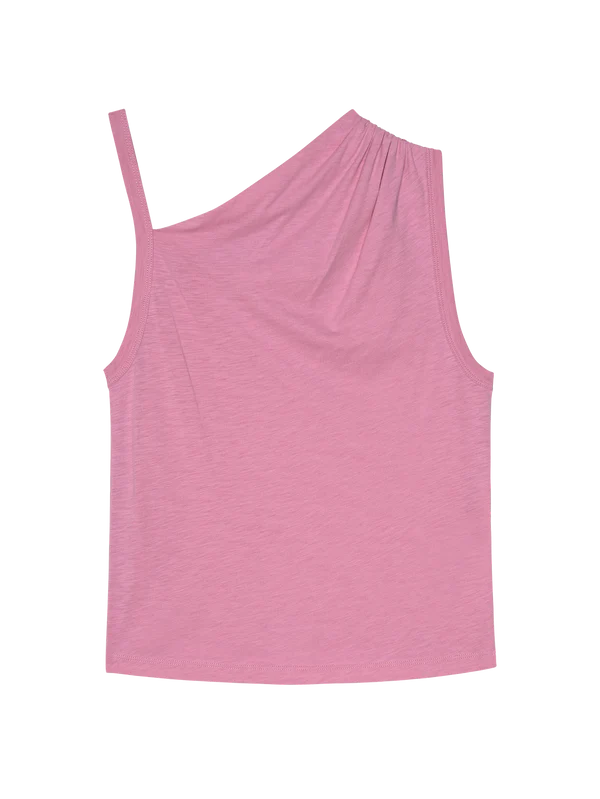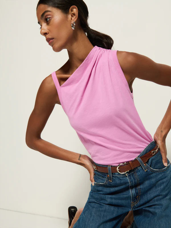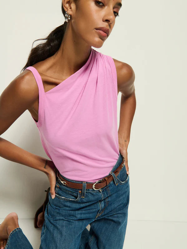 She’s chic and uncomplicated, meet the Quin Asymmetrical Tank. Made in a Pima Cotton, this asymmetrical silhouette features a single shoulder strap and elegantly gathered bodice. This one comes in Dahlia.