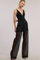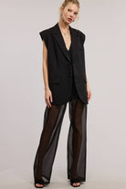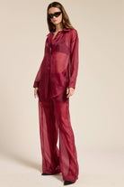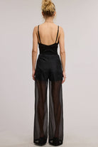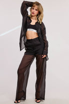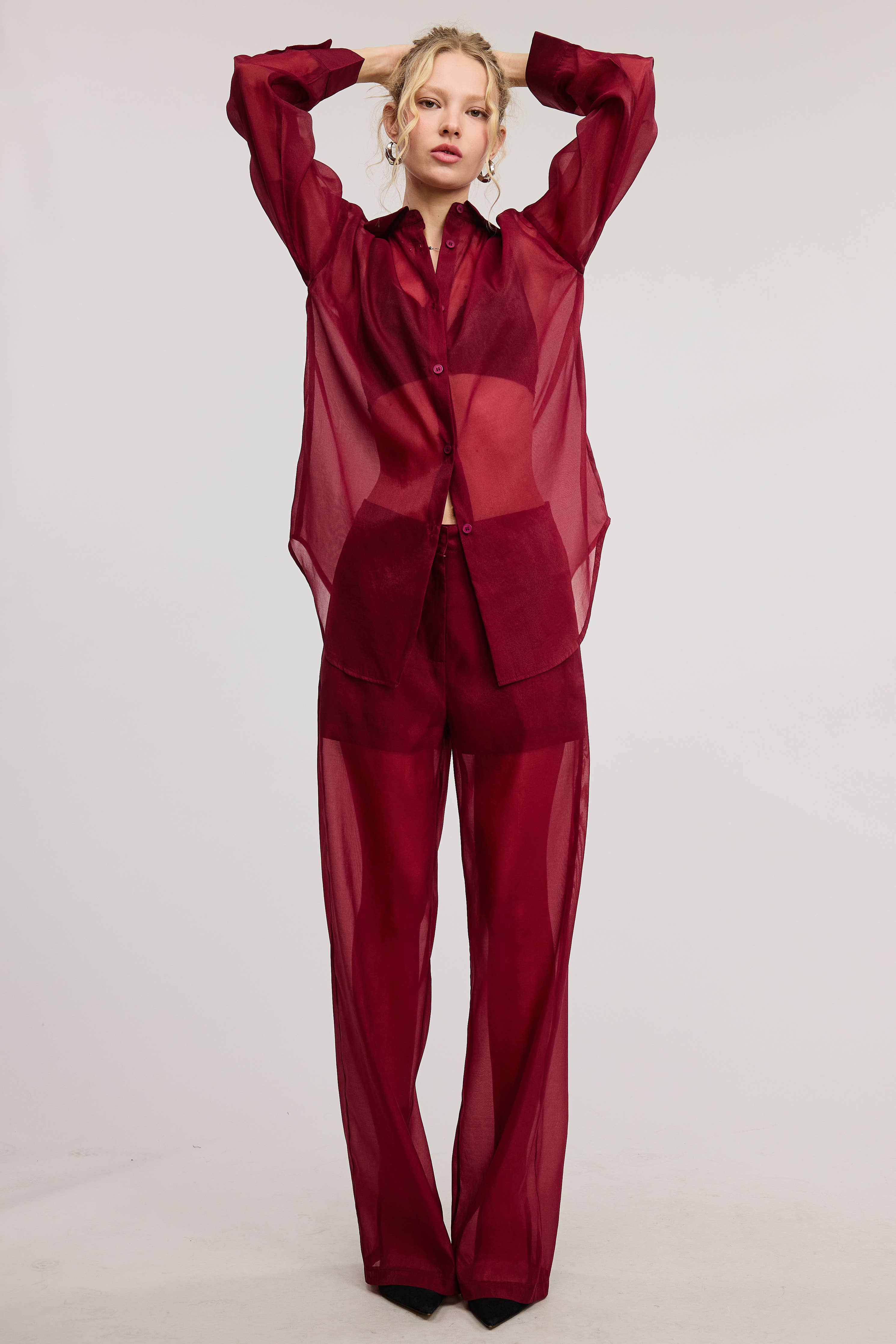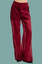 These sophisticated and chic sheer organza pants feature a shorts lining underneath. Designed with a mid-rise waist, front zipper closure, belt loops, and back pockets, they offer a relaxed fit with a straight-leg silhouette, all highlighted by the elegant sheer organza fabric.