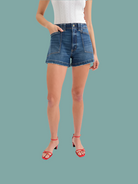 A relaxed, yet polished denim short with stitch front pockets, a high rise waist, and a true indigo wash. Constructed in our "Tough Love" denim, it's mostly rigid but yields to your body in all the right ways.