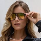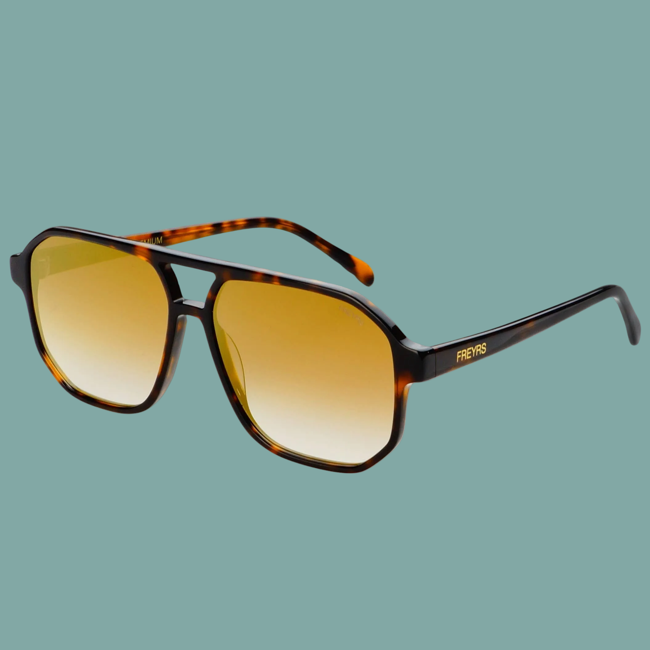 New & Improved Billie Unisex Aviator Sunglasses now feature biodegradable acetate frames paired with premium nylon lenses for superior clarity and durability. Crafted with precision German hardware for lasting quality, these tortoise frames with gold mirror lenses deliver timeless style and reliable performance. Includes protective case for safe storage and travel. Perfect for any occasion.