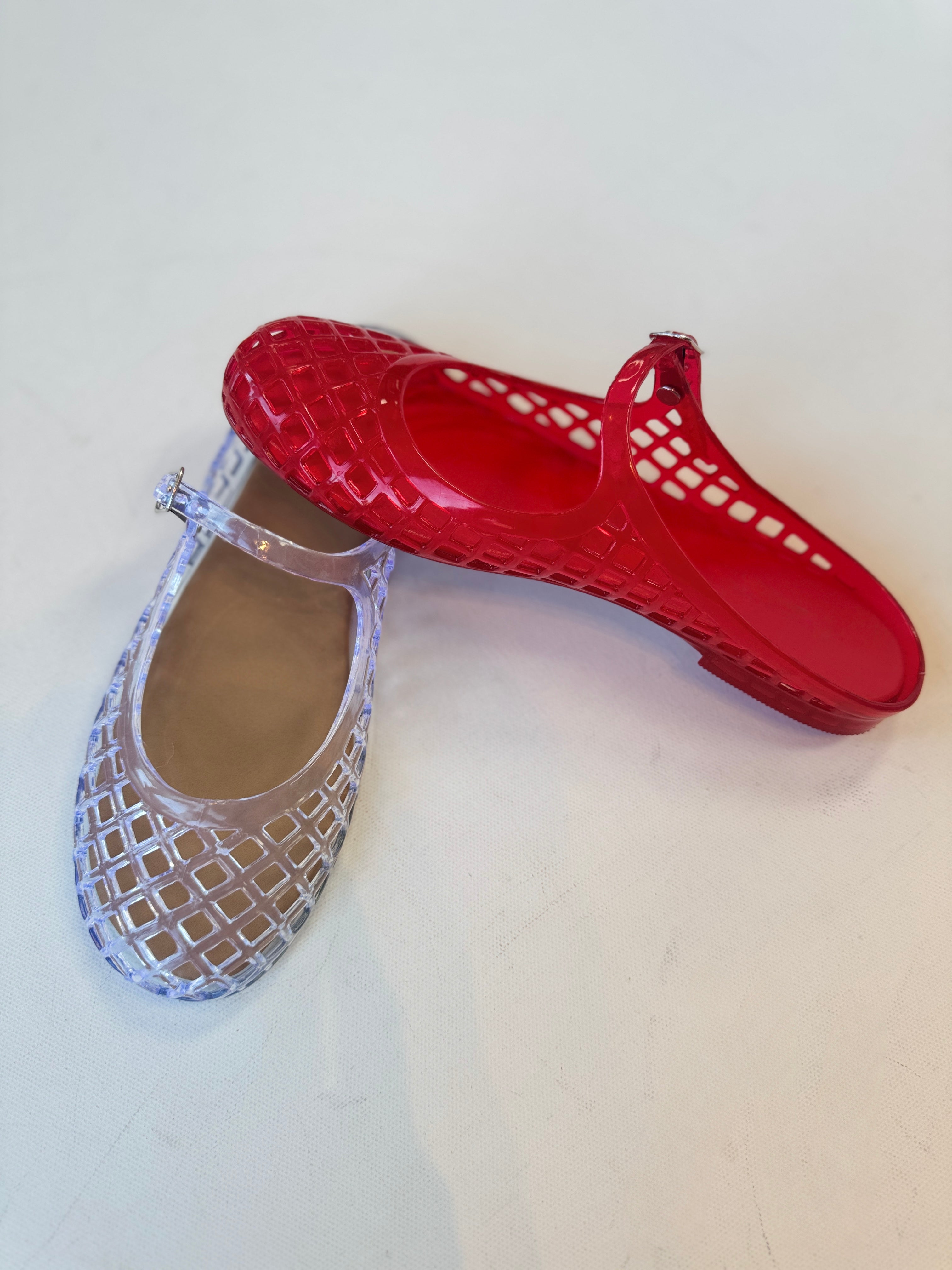 Meet the Bruce Mary Jane Jelly—a fun, versatile flat that comes in two stunning options. Choose the crystal-clear version for a bold, transparent look, or go with the vibrant red for a classic pop of color. Both feature the iconic Mary Jane silhouette with an adjustable strap for a secure, comfortable fit. The flexible sole makes them perfect for all-day wear, whether you're heading to the beach, running errands, or just keeping things casual. A playful shoe that works with any vibe.