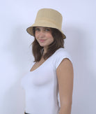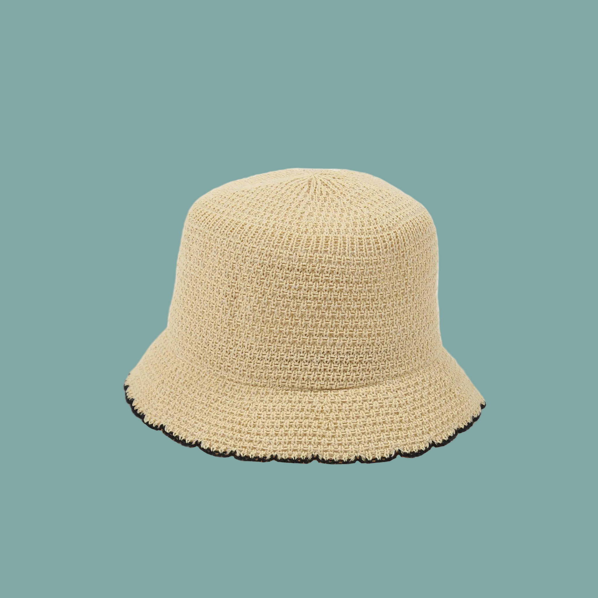 Lightweight bucket hat crafted from paper braid with a charming knit design along the brim. Features a generous 2" brim for sun protection and an adjustable elastic tie at the crown for a secure, comfortable fit. Perfect for spring outings, beach days, or casual warm-weather wear. The breathable paper material keeps you cool while the classic bucket silhouette offers timeless style.