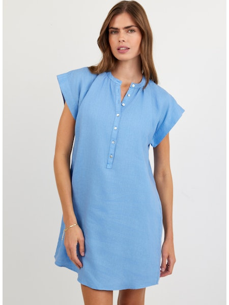 The Cap Sleeve Henley Dress is an easy, everyday style designed for breathable comfort with a refined finish. Rolled cap sleeves offer soft coverage with a casual, effortless feel that works for any season. The Henley placket neckline adds subtle structure and a touch of polish, elevating your everyday look. A rounded hemline creates movement and an easy, flattering drape that moves with you throughout the day. Perfect for layering or wearing solo, this dress transitions seamlessly from casual outings to relaxed work settings.