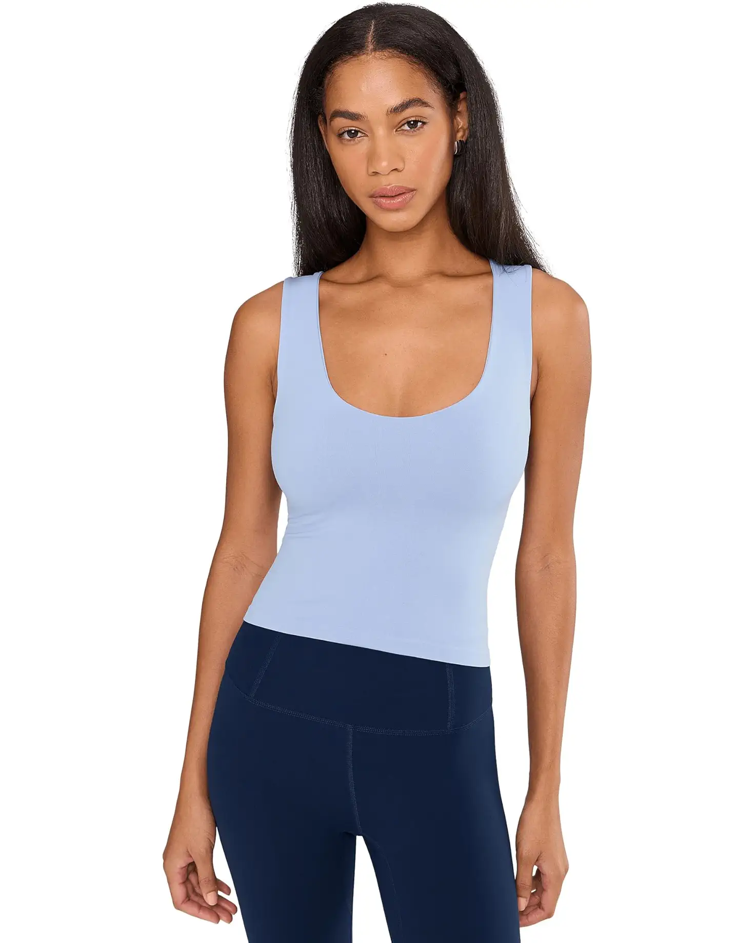 A new addition to your favorite seamless collection. This sleek tank is featured in a buttery soft fabrication with a scoop-neckline and sleeveless silhouette.
