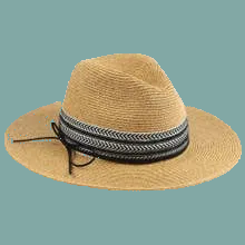 Classic western style meets modern comfort in this paper braid fedora. The structured fedora crown pairs with a generous 3" wide brim for excellent sun protection. Eye-catching patterned trim wraps the crown, while a black leather hat band adds authentic western flair. An elastic tie in the sweatband ensures a secure, adjustable fit. Sized at 57cm for a comfortable all-day wear. Perfect for ranch days, outdoor adventures, or adding character to your everyday look.