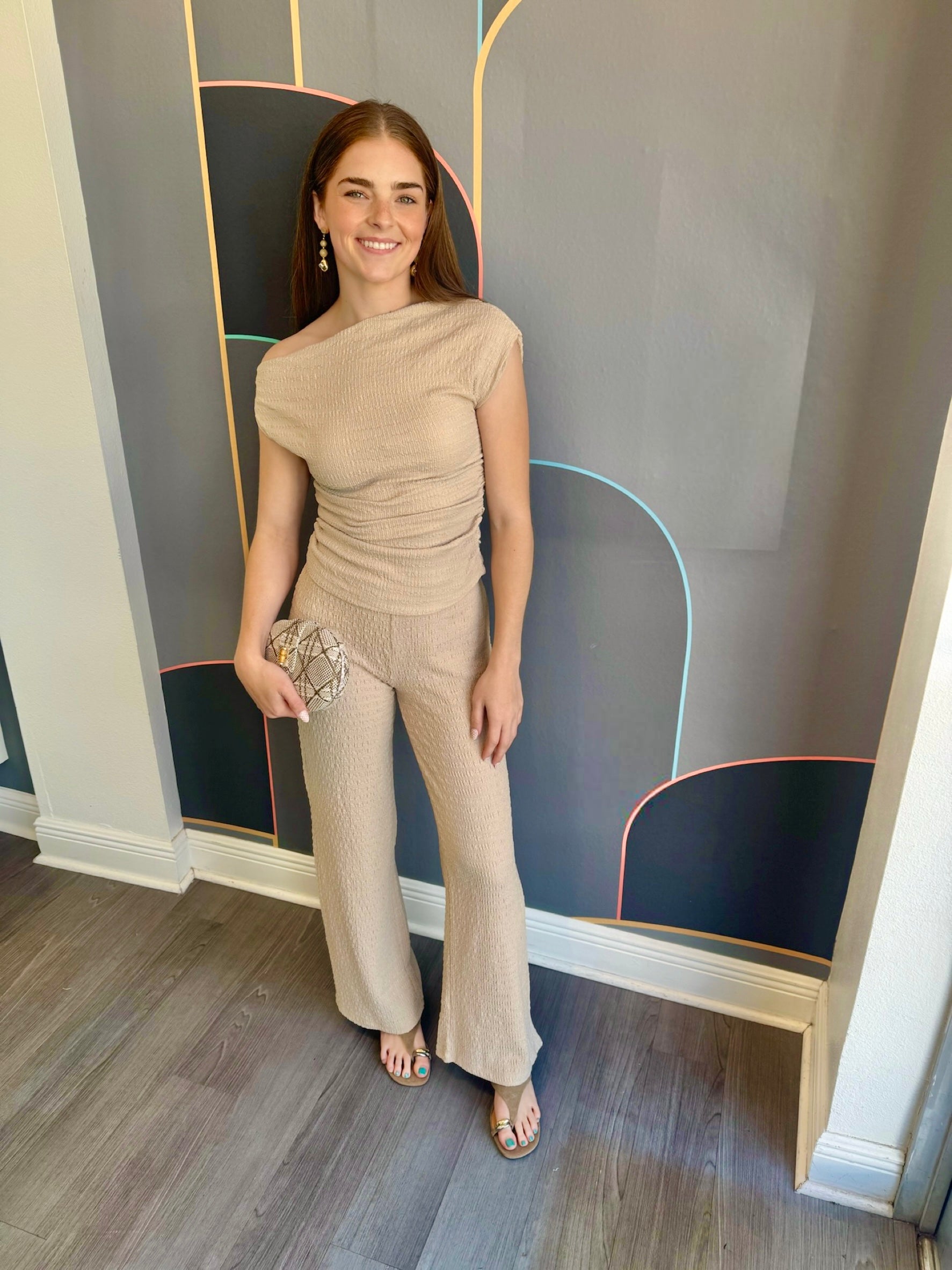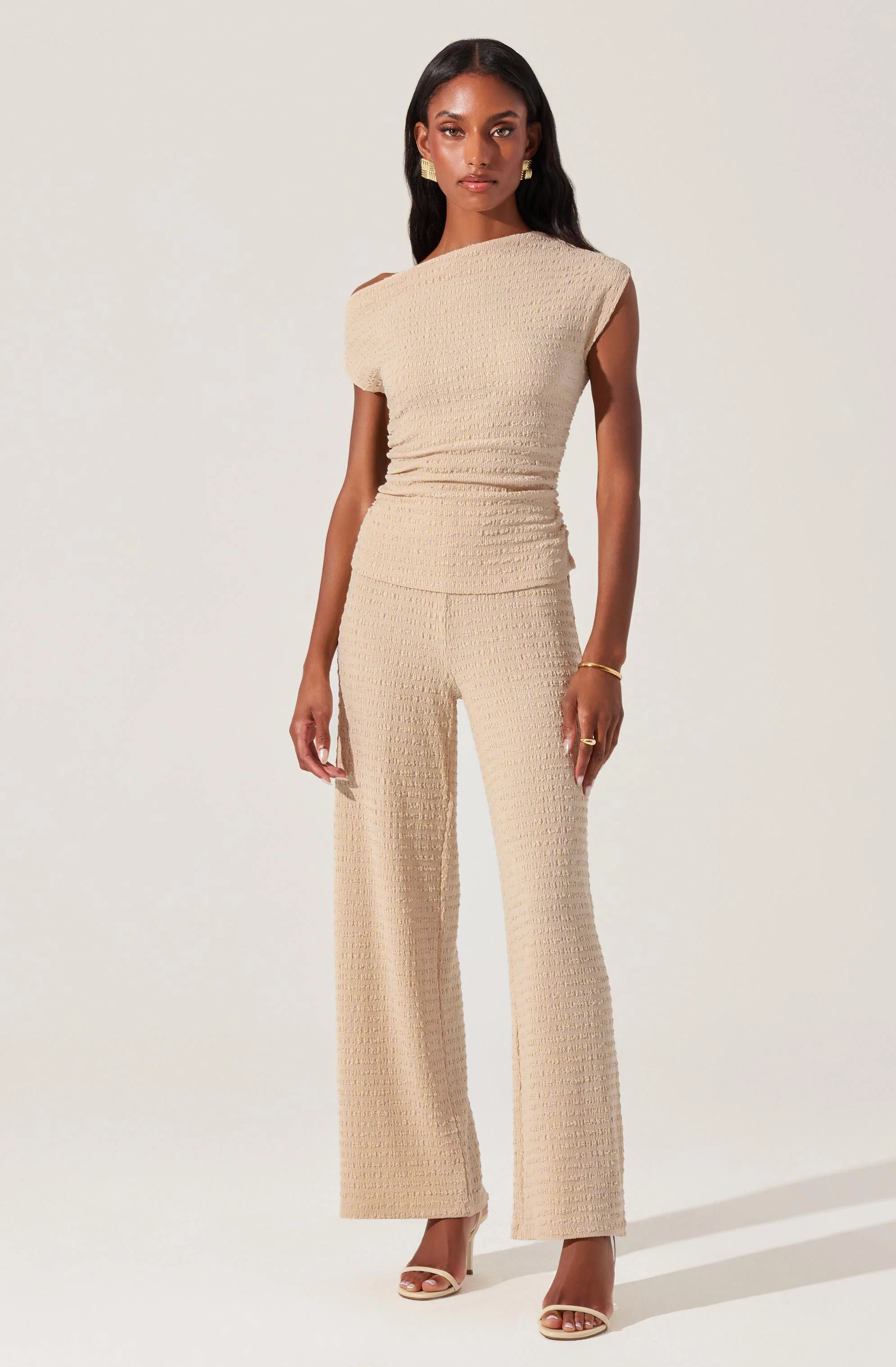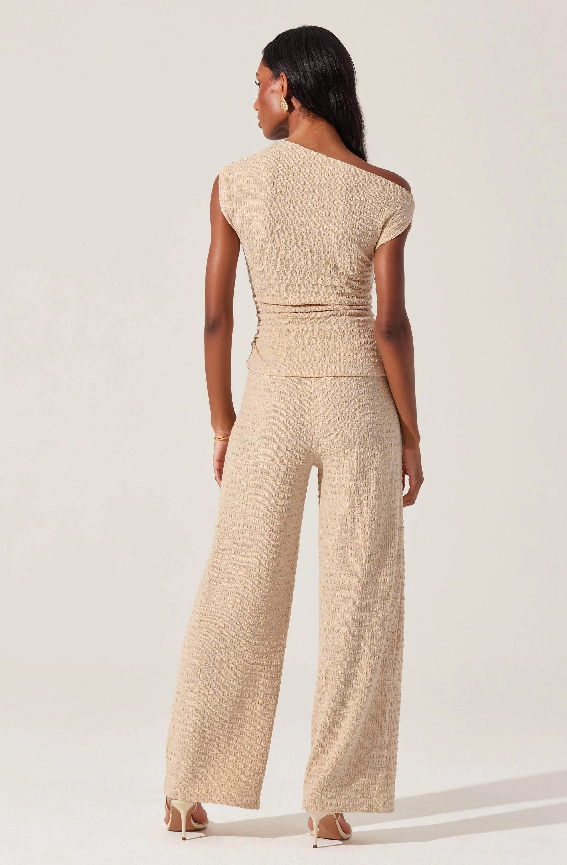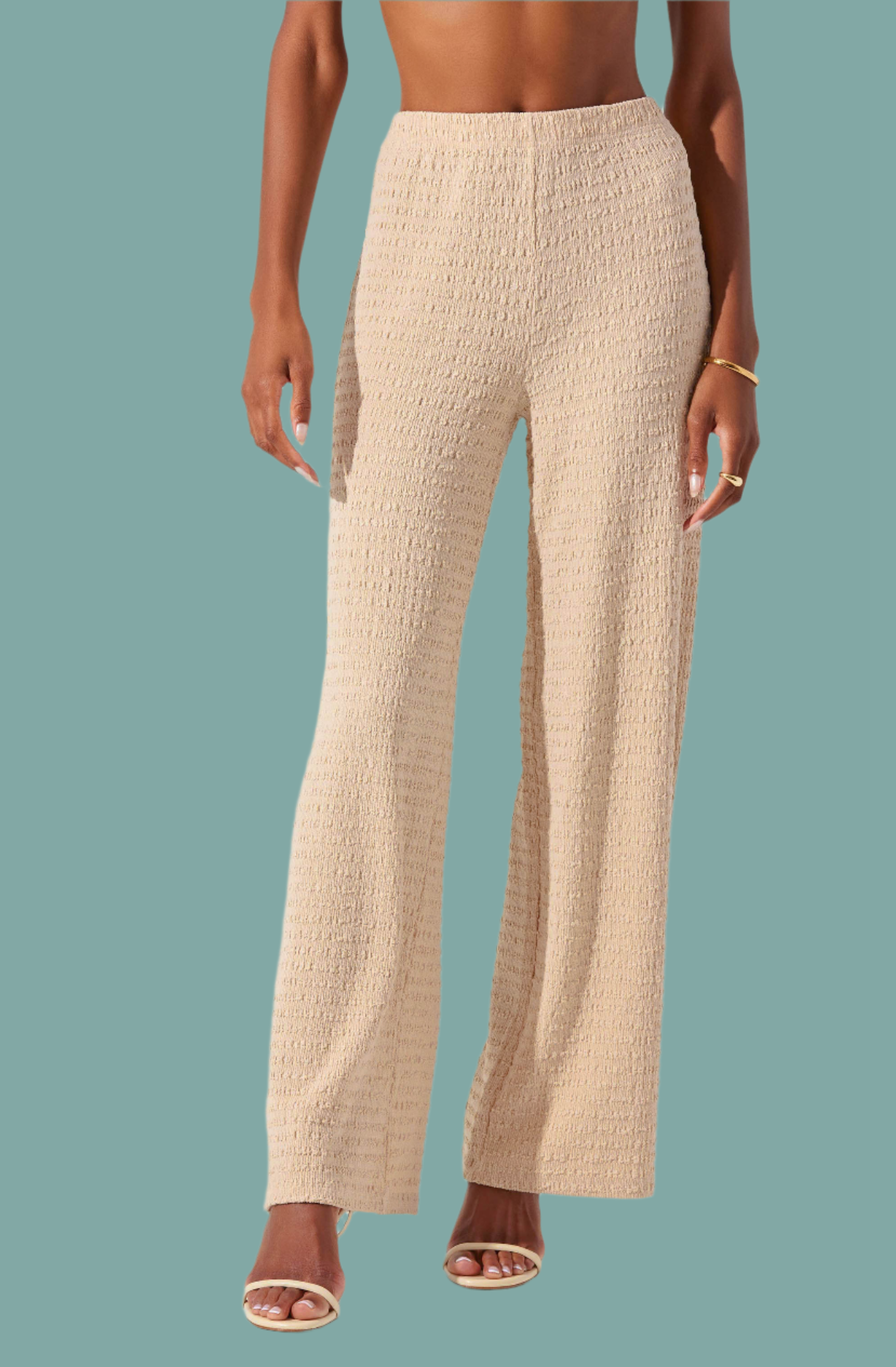 Unleash your playful side with the Keir Pants. These textured knit pants feature a trendy wide leg silhouette and an easy pull-on style with an elastic waistband. Dry clean only for convenience and durability. Made with 95% Polyester and 5% Elastane for a comfortable fit.