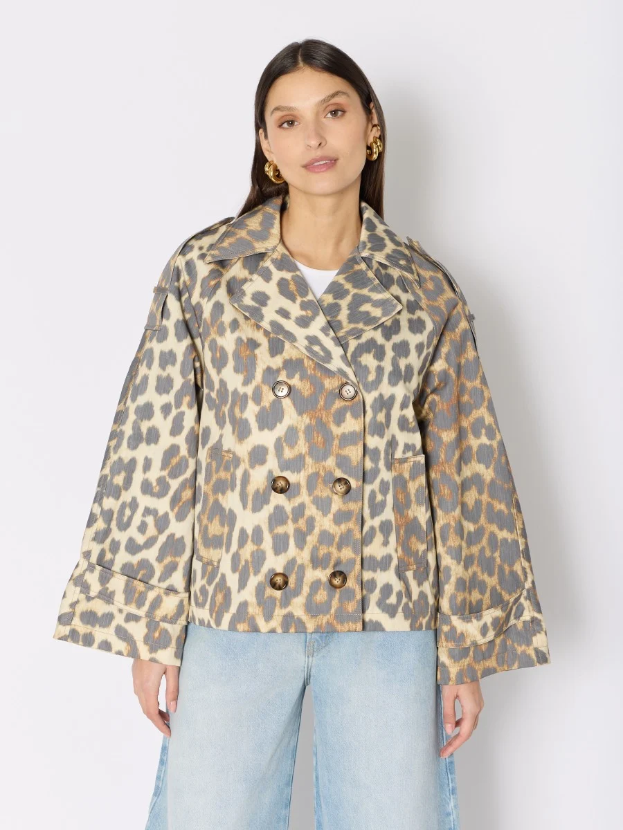 The trench MURIEL is a piece that embodies the timeless elegance of French fashion, while adding a bold touch thanks to its print leopard. This trench revisits a classic with a modern and oversized cut. Made from cotton, it is both light and durable, ideal for mid-season days. Its double breasted and cuff straps add details that enhance the style and ensure an unforgettable look.