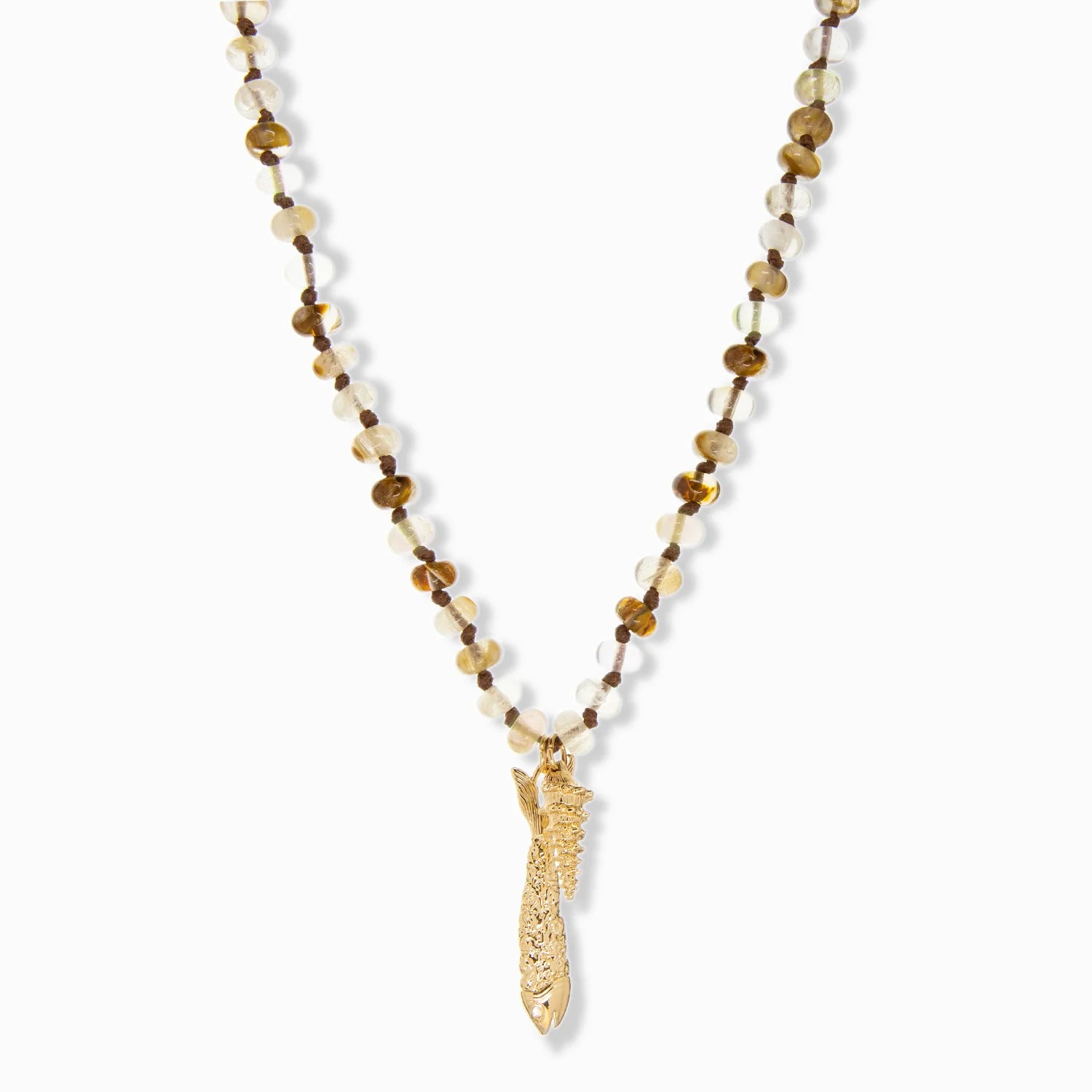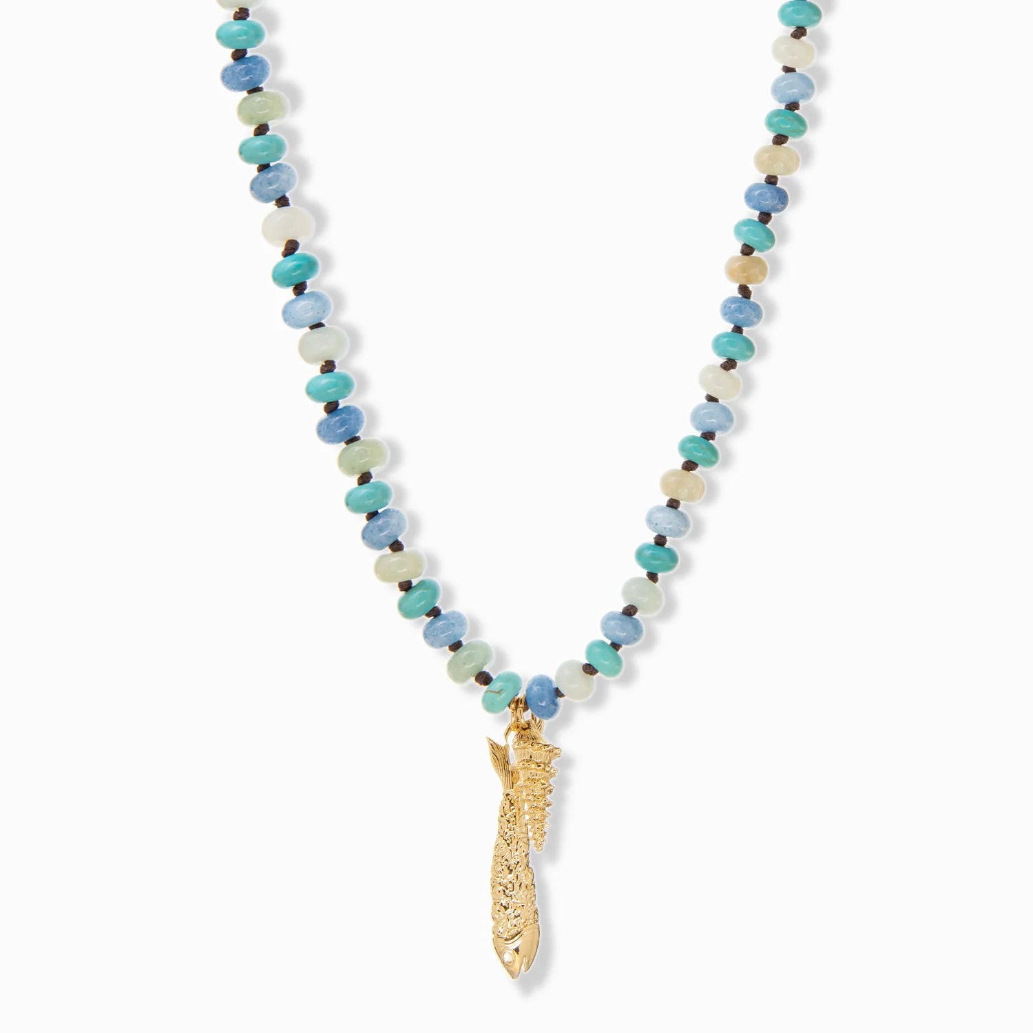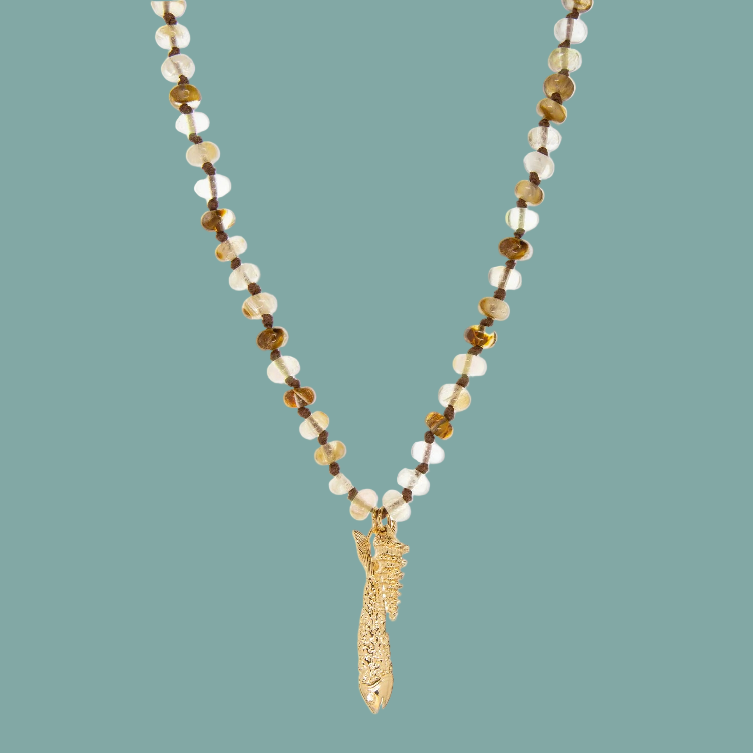 rondelle beaded necklace with fish/shell charms