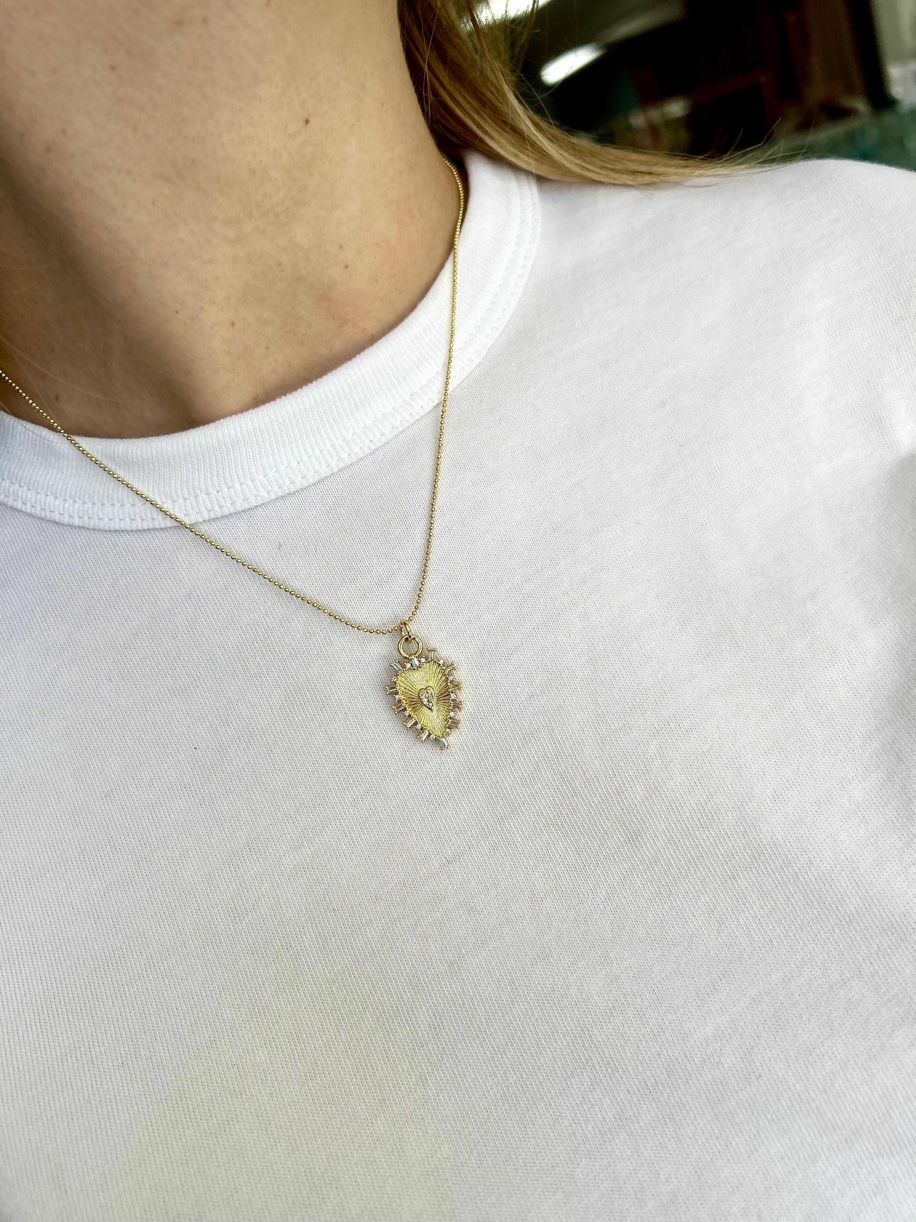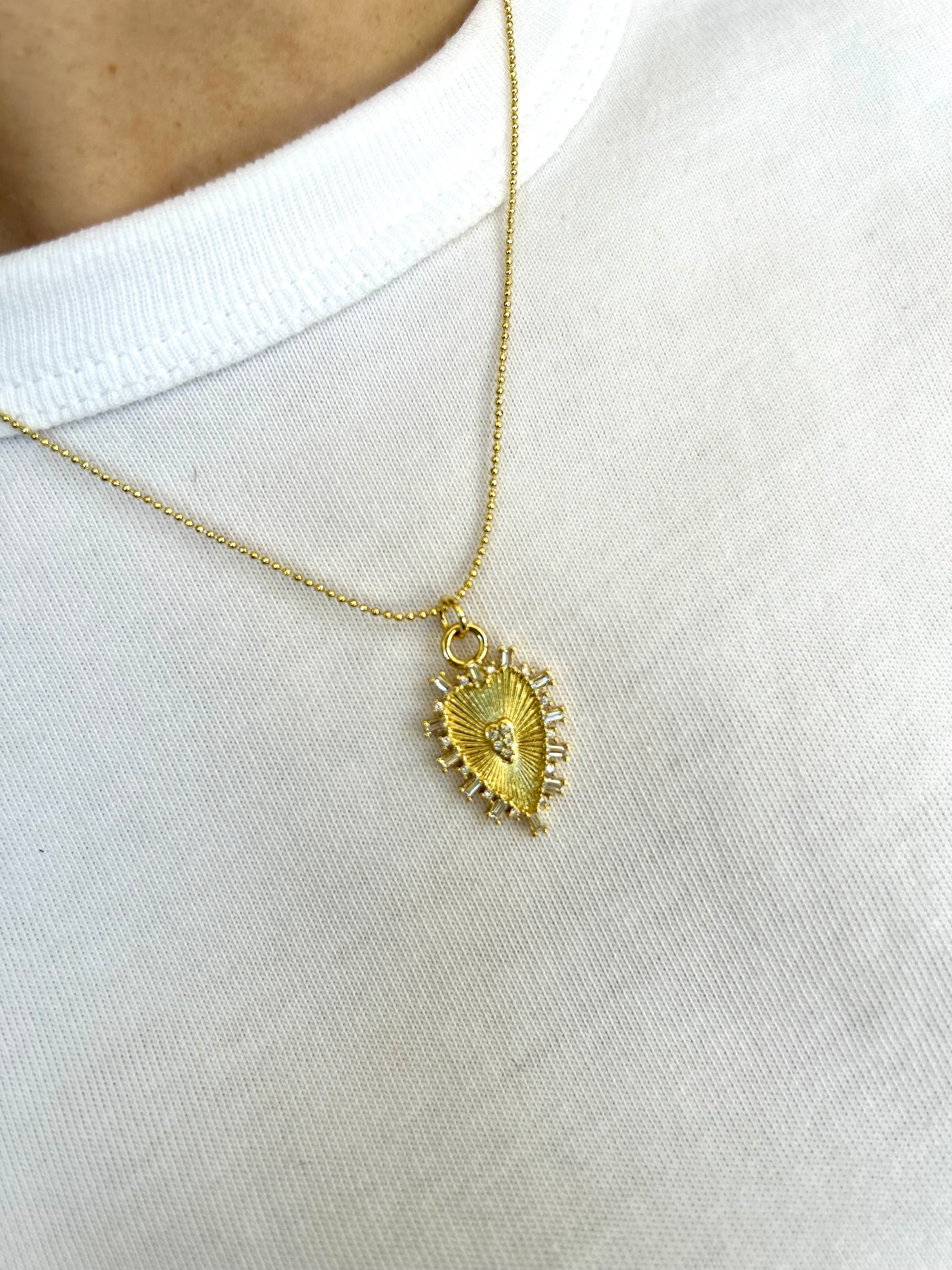 Gold 20" adjustable mini ball chain necklace with etched heart charm