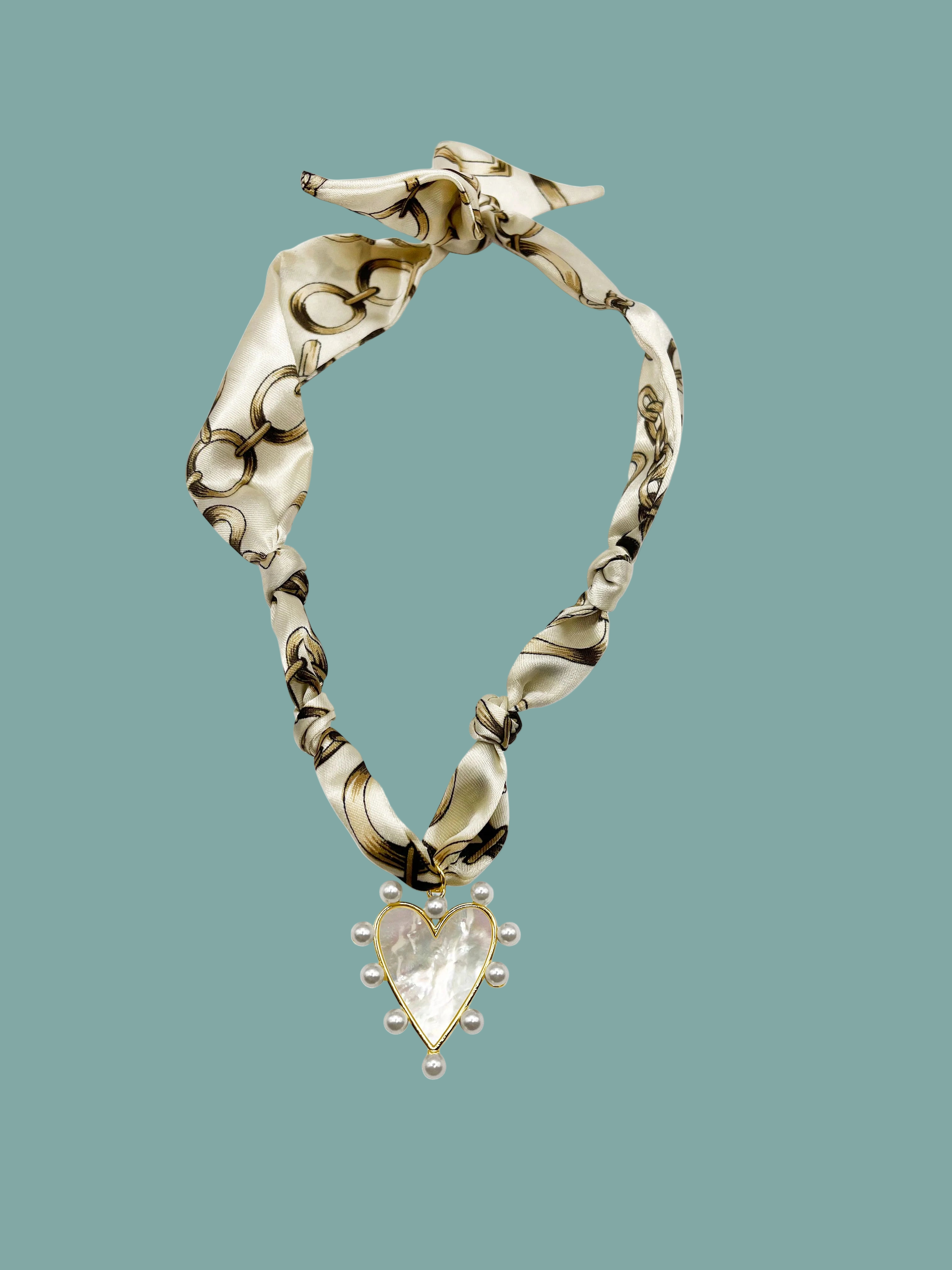 This 27" silk scarf necklace features a charming pearl heart pendant, blending elegance with a relaxed vibe. The tie closure allows you to adjust the fit and style easily, making it a versatile accessory for casual outfits or dressing up. Its soft silk texture adds a touch of luxury while keeping comfort in focus.