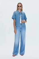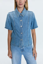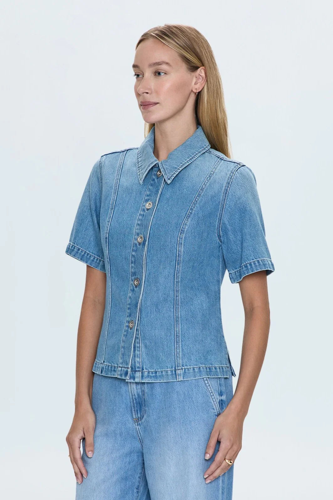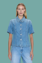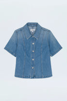 Slim fit to the body, the Cyndi short sleeve shirt is cut in a fluid tencel blend denim and washes to a subtle mid indigo.