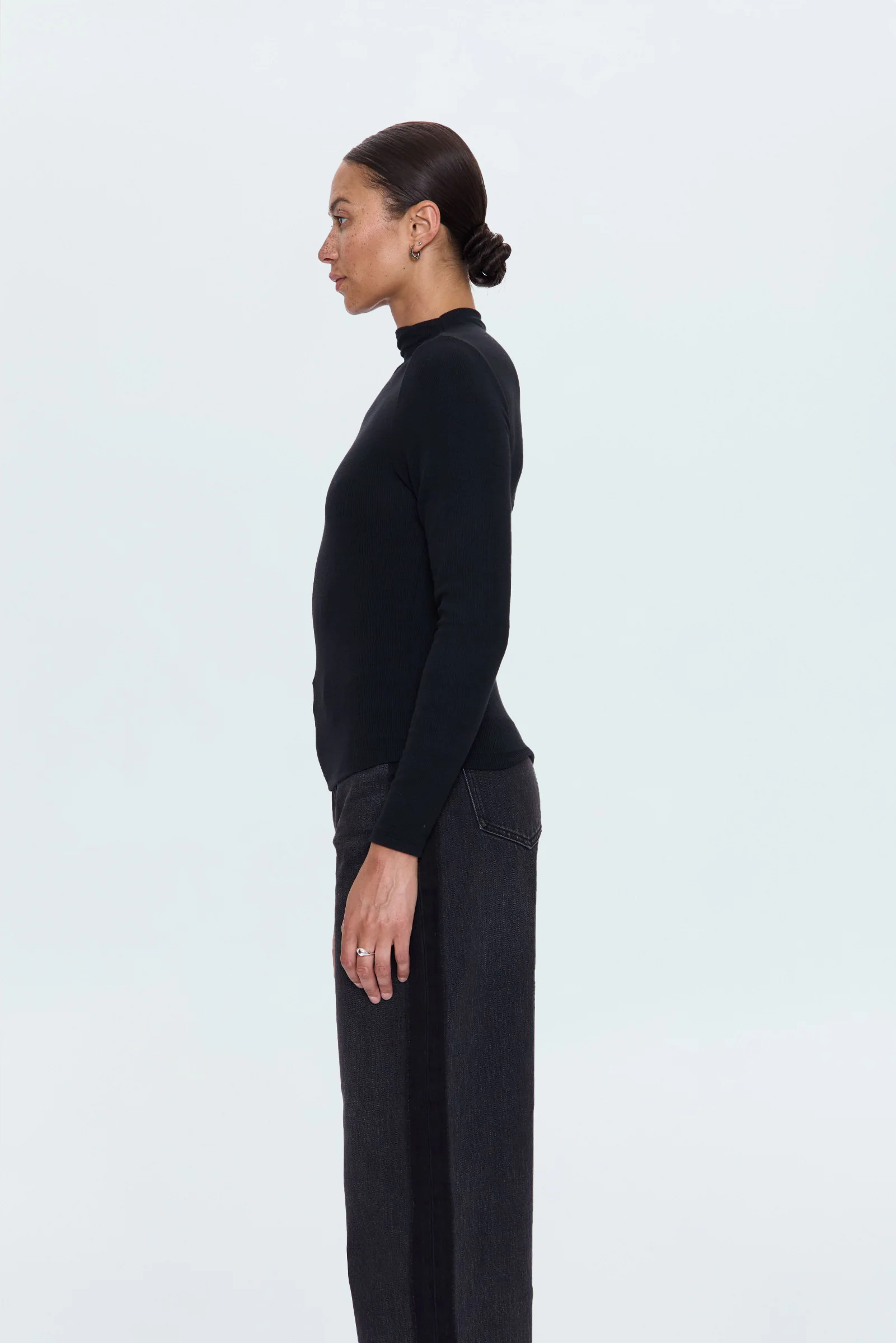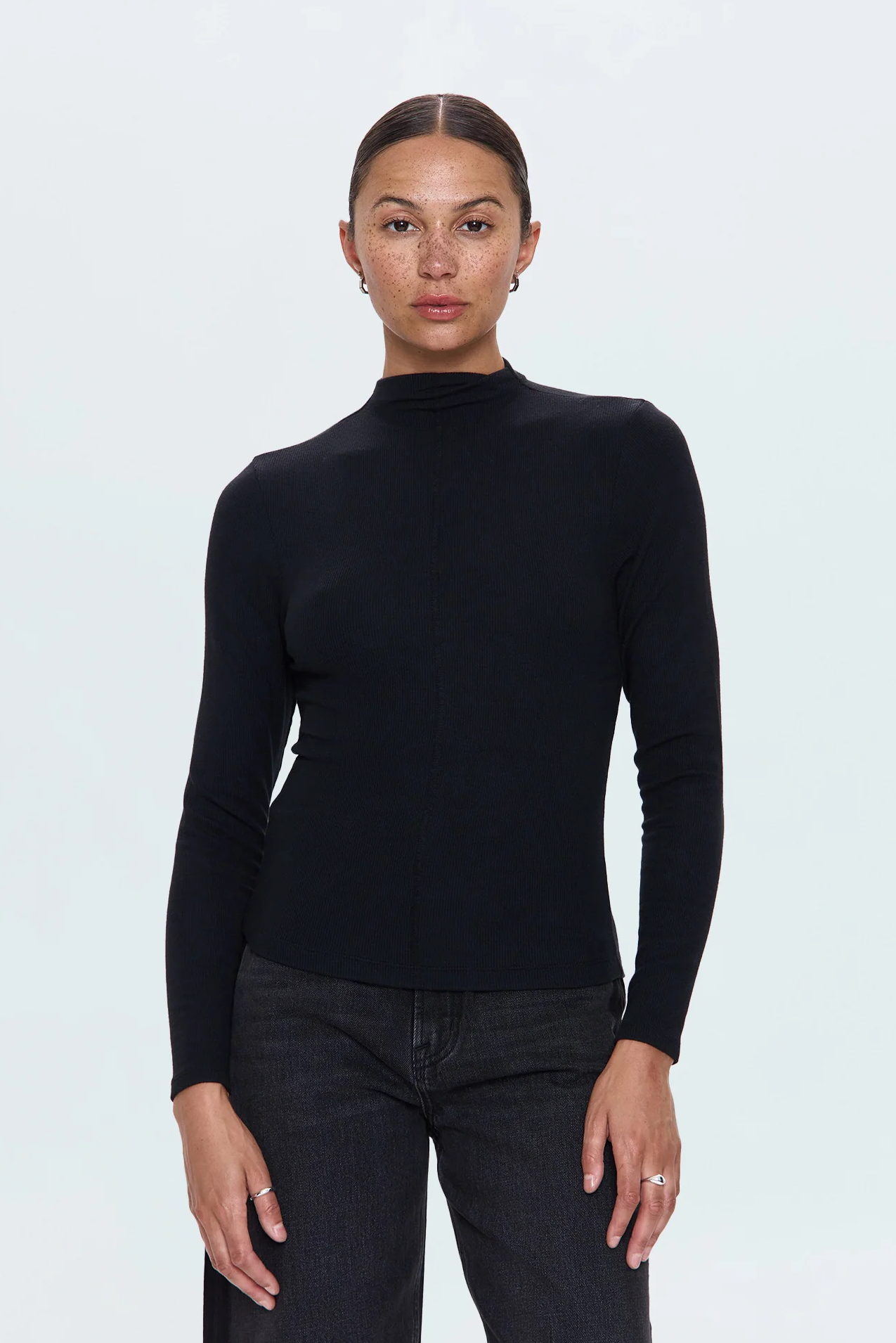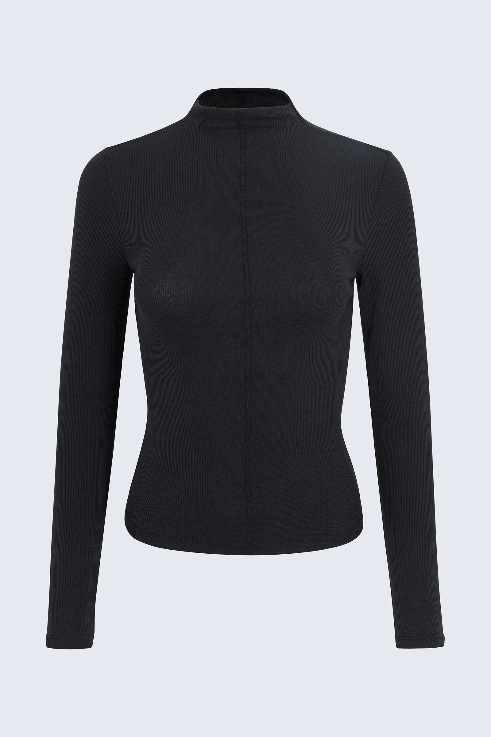 The sleek essential your wardrobe has been waiting for. Dara pairs a slim, body-skimming fit with a modern funnel neckline that feels equal parts chic and versatile. Designed in our soft, stretchy modal blend, it layers seamlessly under blazers or denim jackets but looks just as sharp worn solo. Finished with clean lines for an elongated effect. Crafted in Noir, a timeless black that adds instant polish to any look.